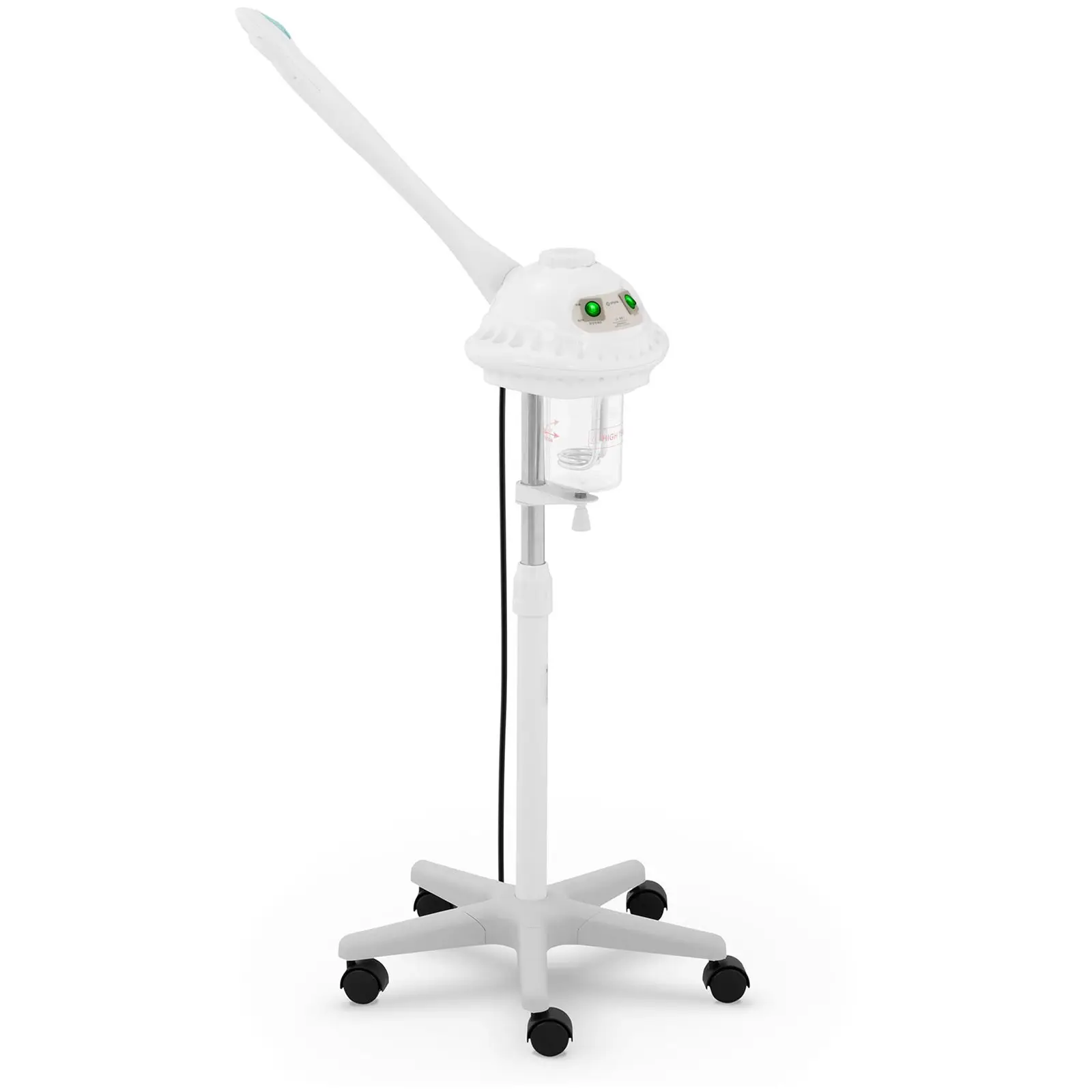 Physa-kosmetiikkatuotteiden kasvohöyrylaitetta voidaan käyttää kauneus- ja hierontasalongien, kylpylöiden, meikkistudioiden ja wellness-hotellien ammatillisessa ympäristössä sekä yksityiskäyttöön. Kasvojen höyrystämisen ja otsonin desinfioinnin yhdistelmää käytetään syväpuhdistukseen, se optimoi hapen saannin, ja kosteuttaa ja rentouttaa ihoa. Höyryhoidon ja otsonin yhdistelmällä voidaan myös vähentää aknea ja tulehduksia. Pientä höyrylaitetta voidaan käyttää myös huoneilman parantamiseksi. Pienen painonsa ja viiden tasaisen pyörän ansiosta höyrytintä voidaan kuljettaa vaivatta. 1,75 m pitkä kaapeli, jonka korkeutta voidaan säätää 143-151 cm:n välillä, ja höyrysuutin, jota voidaan kääntää 360 ° 61,5 cm pitkässä varressa, mahdollistaa vaivattoman sijoituksen käyttäjän haluamaan suuntaan. Vapozon-höyrytin on erittäin helppokäyttöinen. Höyry- ja otsonitoiminnot voidaan aktivoida ja kytkeä pois päältä erikseen kahdesta pääkytkimestä. Automaattinen sammutus vedenpinnan ollessa liian matala varmistaa turvallisen käytön. Vesisäiliö, jonka tilavuus on 1 200 ml, voidaan täyttää helposti. Valitessasi Fysan otsonihöyryttimen valitset tuotteen, joka on sekä kestävä että helppohoitoinen. Valmistettu korkealaatuisista materiaaleista, kuten lakatusta teräksestä, ABS:stä ja muovisäiliöstä, höyrytin ei ole ainoastaan erityisen kestävä mekaanisia ja kemiallisia vaikutuksia vastaan, vaan myös helppo puhdistaa ja ylläpitää.