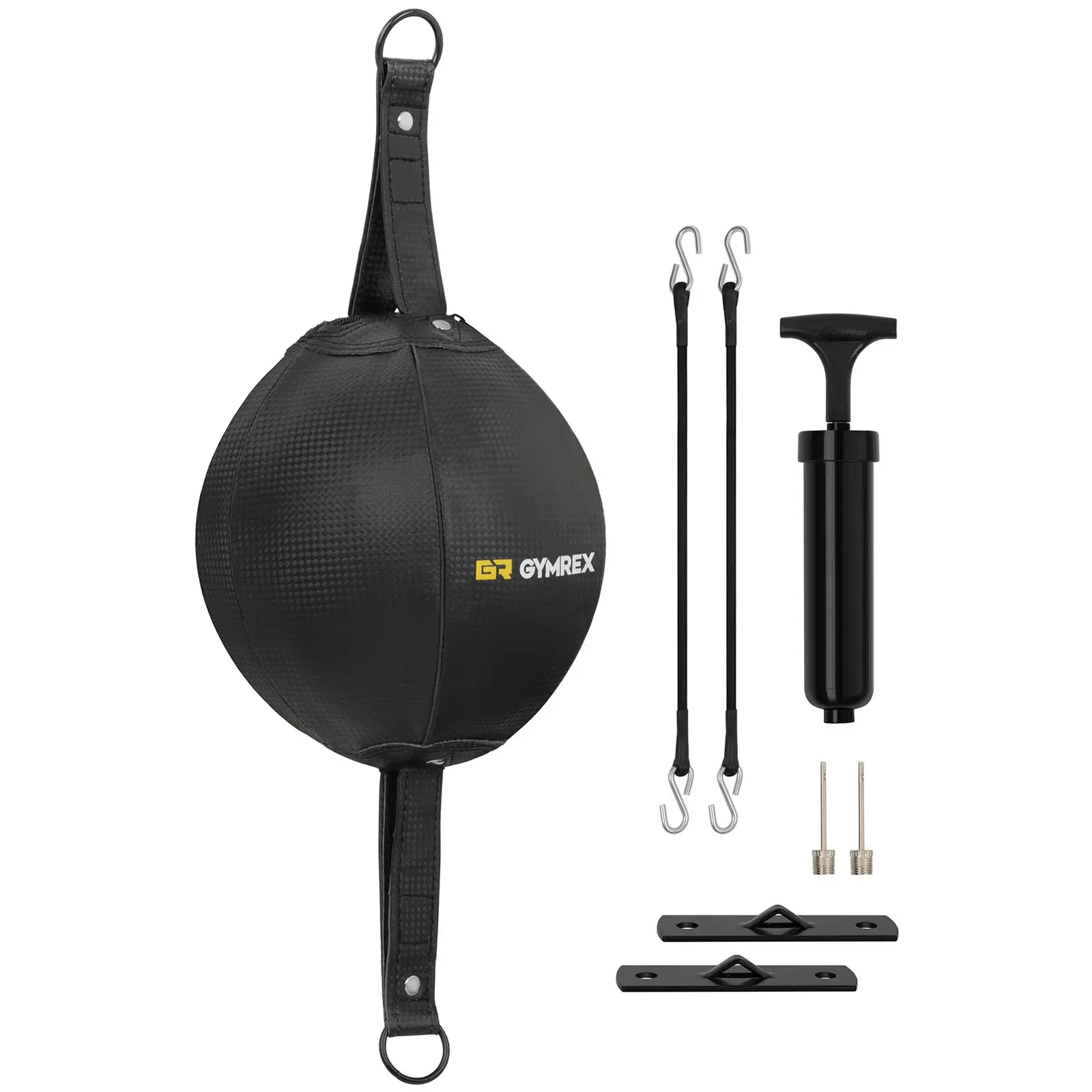 Treenaa kuin Roy Jones Jr. ! Kaikkien aikojen nopein nyrkkeilijä harjoitteli mielellään katto-lattiapallolla. Katto-lattiapallolla GR-DS 8 parannat lyöntitekniikkaa, kestävyyttä ja refleksejä. Ilmatäytteinen pallo on kahdella kumisella narulla kiinnitettynä nyrkkeilypallo. Kuminarujen ansiosta pallo heilahtaa jokaisen lyönnin vaikutuksesta nyrkkeilijästä pois päin ja takaisin. Lyöntivoima ja kuminarujen jännite aikaansaa voimakkaan heilahtelun. Tästä syystä katto-lattiapallo soveltuu kokeneiden nyrkkeilijöiden lisäksi mitä parhaiten myös aloittelijoiden ja harrastelijoiden käyttöön. Gymrexin nyrkkeilytarvikkeet tarjoavat sinulle pitkäaikaisen ilon urheilun ja voimaharjoittelun parissa, koska ne vakuuttavat laadukkuudellaan. Katto-lattiapallo on valmistettu kestävästä keinonahasta. Tämä materiaali on erittäin helppohoitoinen. Sen sisällä on erittäin laadukas lateksipallo. Se täytetään ilmalla toimituksen sisältöön kuuluvan pumpun avulla. Pitkäikäiset kuminarut vakuuttavat kestävyydellään. Lujatekoiset materiaalit takaavat turvallisen käytön ja vankan kiinnityksen. Tarkkaan harkittu muotoilu mahdollistaa helpon kiinnityksen. Kaikki tarvittava kiinnitysmateriaali kuuluu settiin. Pidikkeet kiinnitetään kattoon ja lattiaan. Kuminarut kiinnitetään koukuilla palloon, jonka jälkeen nyrkkeilytreeni Gymrexin GR-DS 8 katto-lattiapallolla voi alkaa.