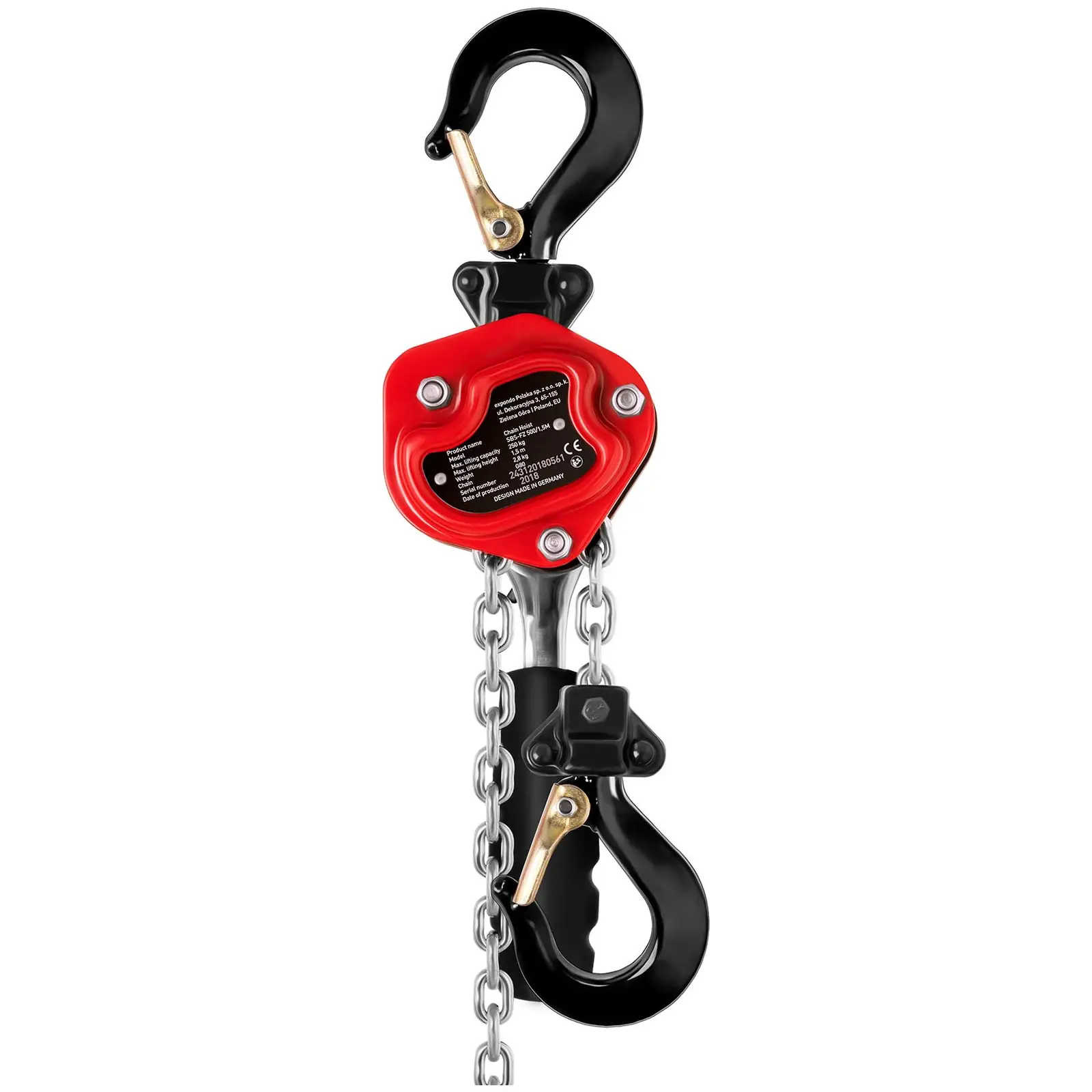 Teräspalkki, moottorin osa, rakennusteline – on useita esineitä, jotka ovat liian painavia siirrettäviksi ilman apuvälineitä. Juuri tähän tarkoitukseen on ketjutalja SBS-FZ 250/1,5M, joka moninkertaistaa voimasi ja helpottaa painavien lastien nostossa. Joustavan rakenteensa ansiosta sitä voidaan käyttää niin rakennuksilla, työverstaissa tai varastohalleissa. Steinberg Systemsin ketjuviputaljan kantokyky on jopa 250 kg, minkä laitteen lujatekoinen teräsrakenne mahdollistaa. Myös teräsketju, jolla lastit nostetaan, on erittäin vankka ja se erottuu edukseen 4 millimetrin ketjulenkeillään. Ketjuviputaljalla nostat esineet jopa 1,5 metrin korkeuteen, joten niiden siirtelyyn saat mitä parhaimman liikkumavaran. Talja työskentelee mekaanisesti ilman ulkopuolista energialähdettä. Kuormat voidaan nostaa tai siirtää yksinkertaisesti ketjusta vetämällä. Näin ollen talja on käytettävissä erityisen joustavasti Räikän avulla myös painavien kuormien nosto ja lasku sujuu erityisen mukavasti. Räikkä voidaan asettaa toimintovalikosta keskelle, jolloin ketju lukittuu varmasti. Räikkää säädetään vipukahvalla, joka on päällystetty kumilla käyttömukavuuden takaamiseksi. Ketjutalja kiinnitetään kiinteällä koukullaan kattoon tai palkkiin. Toinen koukku on tarkoitettu lastille. Se voidaan varmistaa sulkimella, joten esine roikkuu ketjussa turvallisesti. Nosto- ja laskuliike voidaan keskeyttää millä tahansa hetkellä ja lukita räikästä varmistaen, joten työskentelyn täysi kontrolli on aina mahdollista ja turvallisuus taattu.