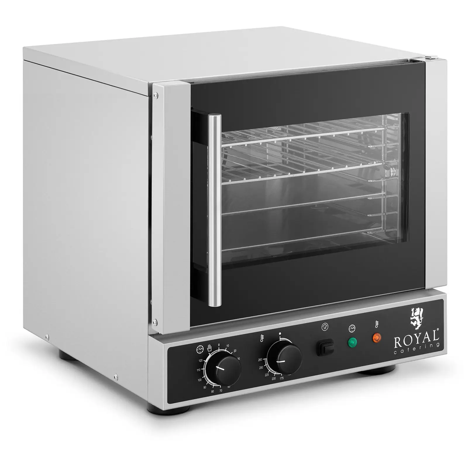 Royal Cateringin kiertoilmauuni varmistaa tehokkaan ilmankierron, joka taas mahdollistaa nopean ja tasaisen paistamisen. Kiertoilma soveltuu monenlaisien ruokien, kuten nugettien, kanansiipien, perunoiden tai pizzojen paistamiseen, ja se on ihanteellinen käytettäväksi ravintoloissa, kahviloissa, bistroissa, huoltoasemilla, sekä myös kotitalouksissa. Emme halunneet jättää mitään sattuman varaan tämän monitoimiuunin kohdalla ja luotimme uunin kehittämisen asiantuntijoille, jotka tulevat yhdestä maailman vaikutusvaltaisimmista ja todennäköisesti yhdestä Euroopan parhaimmista keittiöistä : Italia! Tämä maa on kulinaaristen nautintojen ruumiillistuma, joka voidaan tarjoilla hetkessä tämän kiertoilmauunin avulla! Lämmityselementti toimii 2600 watin teholla, kun taas kiertoilmalämmitysjärjestelmä varmistaa tasaisen ja nopean kypsennyksen. Näin saat rapean, ohuen taikinan, mehukkaat täytteet ja täydelliset vuokaruoat, joilla mozzarella sulaa herkullisesti. Kiertoilma mahdollistaa ennen kaikkea erilaisten ruokien samanaikaisen valmistuksen ilman pellin kääntämistä tai vaihtamista. Yhdistelmähöyrystimessä on termostaatti, jota voidaan säätää 100 – 260 ° C välillä ja joka ylläpitää säädetyn lämpötilan. Integroitua ajastinta voidaan käyttää valinnaisesti ja sitä voidaan säätää 0 – 120 minuutin välillä. Painikkeen painalluksella mahdollinen höyrytoiminto kostuttaa ruokia kypsennyksen aikana estäen näin niiden kuivumisen. Uunin runko ja sisäpuoli on valmistettu korkealaatuisesta ruostumattomasta teräksestä, joka ei reagoi elintarvikkeiden kanssa ja on materiaalina erityisen kestävää ja helposti puhdistettava. Lämmönkestävästä kaksikerroksisesta lasista valmistetun oven kautta kypsymisprosessia pienuunissa voidaan aina tarkkailla ilman oven availuja. Erikseen kytkettävä sisävalaistus takaa myös houkuttelevan tuotteiden esillepanon. Tasojen välinen etäisyys on 25 mm. Kiertoilmauunin toimitus sisältää kaksi leivinpeltiä ja kaksi ritilää.