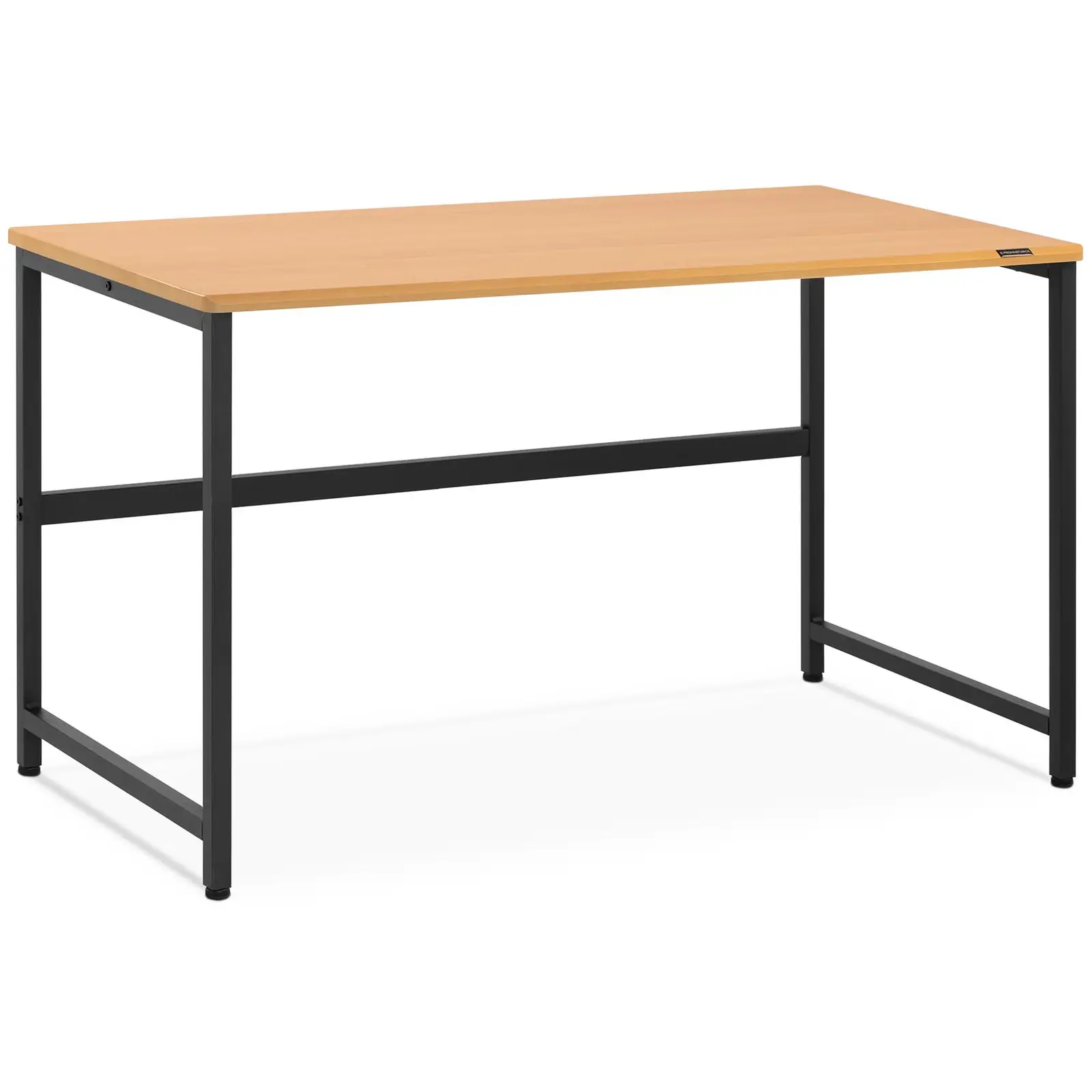 Olitpa sitten toimistossa tai kotona: Fromm & Starckin monipuolinen kirjoituspöytä STAR_DESK_45 on työskentelysi perusta. Sillä on tarpeeksi tilaa tietokoneille, monitoreille, piirtoalustalle tai muille tarvikkeille. Toiminnallinen ja hillitty muotoilu sopii mihin tahansa työympäristöön. Ajattoman moderni pöytä, jonka suuri työtaso soveltuu oivasti kirjoittamiseen, askarteluun tai tietokonepöydäksi! Kirjoituspöytä vakuuttaa vankalla ja kompaktilla rakenteellaan, joka kestää jopa 60 kilon painon. Teräksisten jalkojen tukeman kookkaan pöytälevyn päälle voit laskea kaikki työhön tarvitsemasi välineet. Käyttöohjeiden ja kokoamismateriaalin avulla työpöytä on koottu käden käänteessä. Kompaktien mittojensa (120 x 60 cm) ansiosta tietokonepöytä sopii melkein mihin tahansa. Sen hienovarainen muotoilu sulautuu miellyttävästi miltei kaikkiin sisustustyyleihin. 70 cm:n korkeus on ihanteellinen mukavaan työskentelyyn pöydän ääressä. Ruskea, PVC-pinnoitettu MDF-pöytälevy on aivan yhtä helppohoitoinen kuin tukevat teräksiset jalatkin. Materiaalit ovat käytössä osoittautuneet erityisen kestäviksi ja pitkäikäisiksi, joten voit käyttää tätä kirjoituspöytää vuosien ajan. Jalkojen muoviset (PP) suojatulpat pitävät työpöydän turvallisesti ja luisumatta paikallaan lattiaa naarmuttamatta.