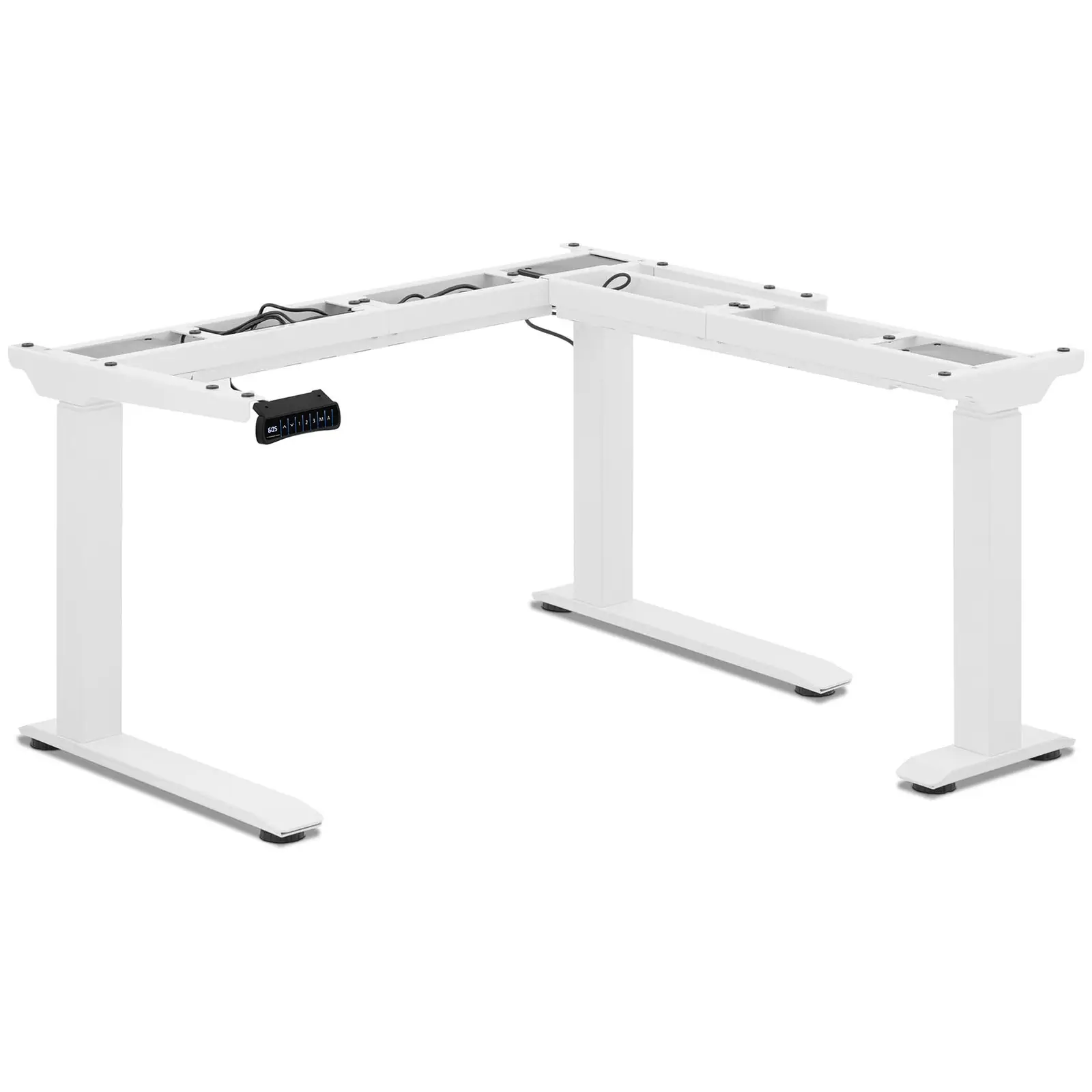 Korkeussäädettävä työpöydän runko STAR_ATFE_30 mahdollistaa työskentelyn sekä istuen että seisten. Kirjoituspöytä muuttuu parissa sekunnissa laajaksi seisomatyöpisteeksi – ja päinvastoin. Fromm & Starck on erikoistunut ergonomisiin ja korkealaatuisiin toimistokalusteisiin, joiden avulla voit tehokkaasti tuoda toistuviin yksipuolisiin liikeratoihin vartalosi kipeästi kaipaamaa vaihtelua. Näin voit välttää tai lieventää yksipuolisesta toimistotyöstä johtuvia terveysvaivoja. Kirjoituspöydän runko on säädettävissä 60 – 125 cm pystysuunnassa. Lisäksi molempien 90° kulman työpintojen leveyttä voi muuttaa. Vasemmalla puolella leveydensäätömahdollisuus on 110 – 190 cm ja oikealla puolella 90 – 150 cm. Voit säätää kolmen nostopylvään korkeutta kolmella moottoreilla hiljaa, kevyesti ja nopeasti (38 mm/s). Säädät pöytää helposti LED-näytöllistä ohjainta käyttämällä. Pöydässä on kolme asetusta kattava tallennustoiminto. Näin voit napin painalluksella vaihtaa pöydän asentoa suosikkiasetustesi välillä. Työpöydän runko kestää jopa 150 kg:n kuormituksen. Lisäksi se on erikoisrakenteensa sekä teräs ja muovielementtiensä ansiosta erityisen vankka ja kestävä. Kumipäällysteiset jalat estävät pöydän liikkumisen, takaavat vakauden ja suojaavat lattiaa naarmuilta. Huomautus: Tämä on korkeussäädettävä pöytärunko ilman pöytätasoa. Pöytälevy ei kuulu toimitukseen, ja se voidaan tilata erikseen. Suosittelemme pöytälevyjä, joiden mitat ovat 130 x 180 cm, 120 x 200 cm tai 60 x 80 cm.