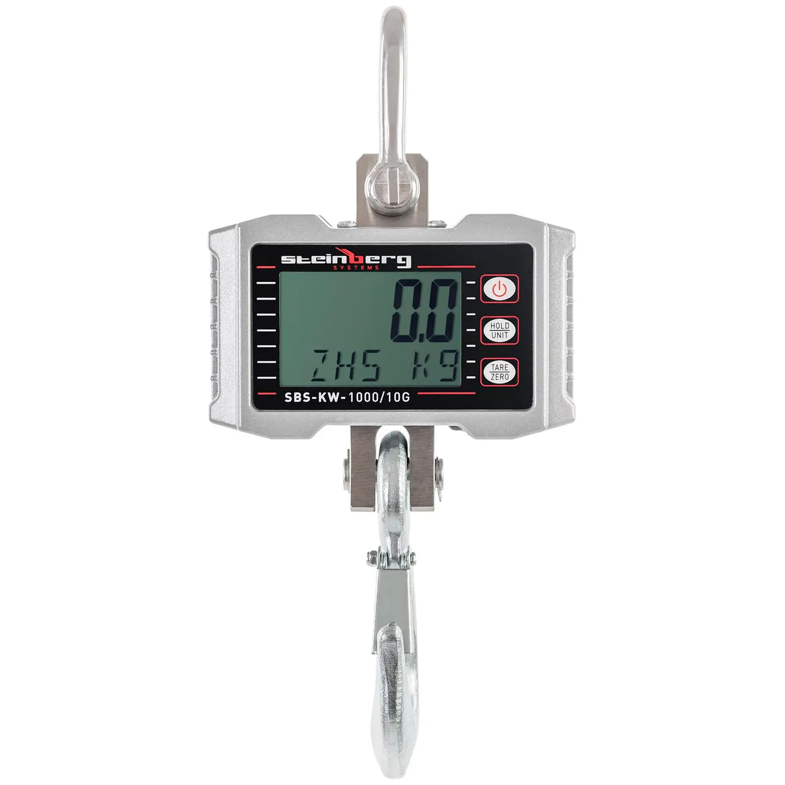 Steinberg Systemsin koukkuvaaka SBS-KW-1000/10G on tarkoitettu ammattimaiseen käyttöön kaikkialla, jossa punnitaan ja liikutellaan raskaita lasteja. Se vakuuttaa mittaustuloksellaan ja on käytännöllisten toimintojensa, kuten taarauksen ansiosta monipuolisesti säädettävissä. Vaaka on kalibroitavissa sekä kilogrammojen (kg) että paunojen (lb) mittaamiseen. Yksikön voi vaihtaa helposti muuntonäppäimen painalluksella. Vaa´an suojaamiseksi laitteessa on ylikuormitustoiminto, joka ilmoittaa käyttäjälle heti, kun maksimikuorman paino on ylitetty. Korkealuokkainen painevalualumiinikuori on osoitus vahvasta iskunkestävyydestä. Ruostumattomasta teräksestä valmistetut koukut on kantavat painoa 1000 kiloon saakka. Koukkuvaaka SBS-KW-1000/10G toimii neljällä AA-paristolla. LCD-teräväpiirtonäyttö sallii mittausarvon luennan myös kapeista kulmista ja kaikilla näkyvyyksillä.