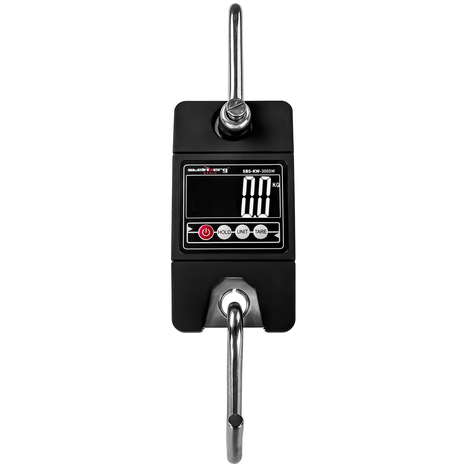 Steinberg Basicin tarkka ja luotettava SBS-KW-300SW-koukkuvaaka sopii teollisuus- ja verstaskäyttöön sekä metsäteollisuus- ja metsästyskäyttöön. Vaaka on valmistettu kestävästä ABS-muovista, sakkeli ja s-koukku ruostumattomasta teräksestä. Koukkuvaaka punnitsee enimmillään 300 kg:n painoisia lasteja 100 g:n tarkkuudella. Vaaka ilmoittaa punnitustuloksen joko kilogrammoina, paunoina tai Newtoneina. SBS-KW-300SW-koukkuvaa’assa on tarkka LCD-näyttö taustavalaistuksella, joten voit lukea mittaustulokset myös epäsuotuisassa valaistuksessa. Näytöllä näkyy ilmoitus mikäli ylität enimmäiskuormitusarvon tai laitteen paristot ovat tyhjenemässä. Jos laitetta ei käytetä 4 minuuttiin, näyttö sammuu automaattisesti.