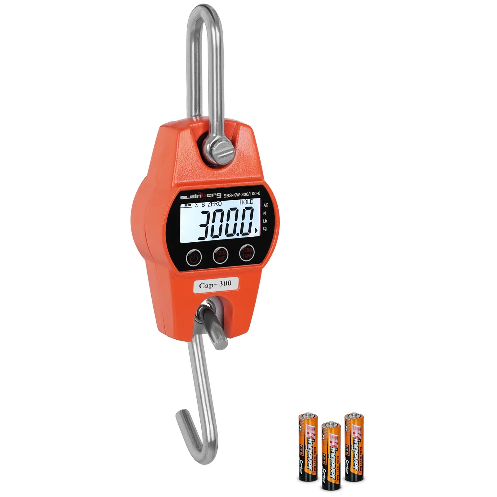 Steinberg Systemsin SBS-KW-300/100-O-koukkuvaaka mahdollistaa enintään 300 kg painoisten lastien punnitsemisen 100 g:n tarkkuudella. Tällaisia vaakoja käytetään myös nostovaakoina. Sairaaloissa, vanhainkodeissa ja avohoitopalveluissa niitä voidaan käyttää myös henkilövaakoina, kun potilaan liikkumiskyky on rajoittunut. Vaa’an oma paino on alhainen, sen vuoksi sitä voi kantaa mukana metsästys-/riistavaakana. Vaa’assa on useita hyödyllisiä toimintoja, kuten taaraus, näytön lukitus ja nollaus. Vaaka ilmoittaa punnitustuloksen seuraavissa yksiköissä: Kilogramma (kg), pauna (lb) ja newton (N). Jos punnitusalue ylittyy, laite ilmoittaa siitä välittömästi. Punnitusarvot ovat helposti luettavissa taustavalaistulta näytöltä. Laite toimii tavanomaisilla paristoilla (AA). Torkkutilatoiminnon ja automaattisen näytönsammutuksen ansiosta paristot kestävät pitkään. Vankan alumiinikuorensa ansiosta koukkuvaaka sopii mainiosti kovaankin teolliseen ja kaupalliseen käyttöön. Steinberg Systemsin ensiluokkainen tuote on valmistettu ainoastaan korkealaatuisista materiaaleista, joten sen luotettavuus ja pitkä käyttöikä ovat taatut. Tietoja Steinberg Steinberg Systemsin SBS-KW-300/100-O-koukkuvaa’asta:
