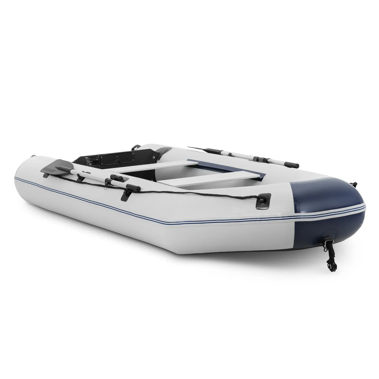 Kaipaatko viikonlopuksi vesille? Etsitkö venettä joelle tai metsälammelle? Olit sitten kokenut ammattikalastaja tai aloitteleva vesilläkävijä, MSW:n kumivene sopii varmasti tarpeisiisi. Se tarjoaa runsaasti istumapaikkoja, hyvän kantavuuden ja luotettavan vakauden. Tämä laadukas kumivene sopii erinomaisesti sekä kalastukseen että retkeilyyn. Se sopii aivan yhtä hyvin käytettäväksi niin merellä kuin sisävesilläkin. Kumivene on valmistettu muovista, mikä tekee siitä UV- ja säänkestävän. Lisäksi siinä on tukeva alumiinipohja. Pohjan ansiosta vene on erityisen vakaa, ja sen kokonaiskantavuus 280 kg tarjoaa paikat jopa 3 hengelle. Veneen istuimina toimii kaksi kestävää alumiinipenkkiä. 132 cm pitkien melojen avulla hoidat rantautumiset ongelmitta. Koska vene on ilmatäytteinen, voit ottaa sen mukaasi mihin tahansa. Pieni pakkauskoko ja käytännöllinen kantolaukku tekevät tästä erityisen helppoa. Veneen sivukammiot voi täyttää toimitukseen sisältyvällä pumpulla. Kumiveneen sisäpinta-ala on 202 x 62 cm, joten se tarjoaa reilusti tilaa istumiseen, rentoutumiseen ja kalastukseen. Toimitukseen kuuluvat lisävarusteet takaavat turvalliset matkat ja rentouttavat vesiretket. Varusteisiin sisältyy 2 melaa, pumppu, korjaussarja, hihna, 2 turvaköyttä, tyhjennysventtiili, 2 alumiinista istuinlautaa ja kantolaukku.