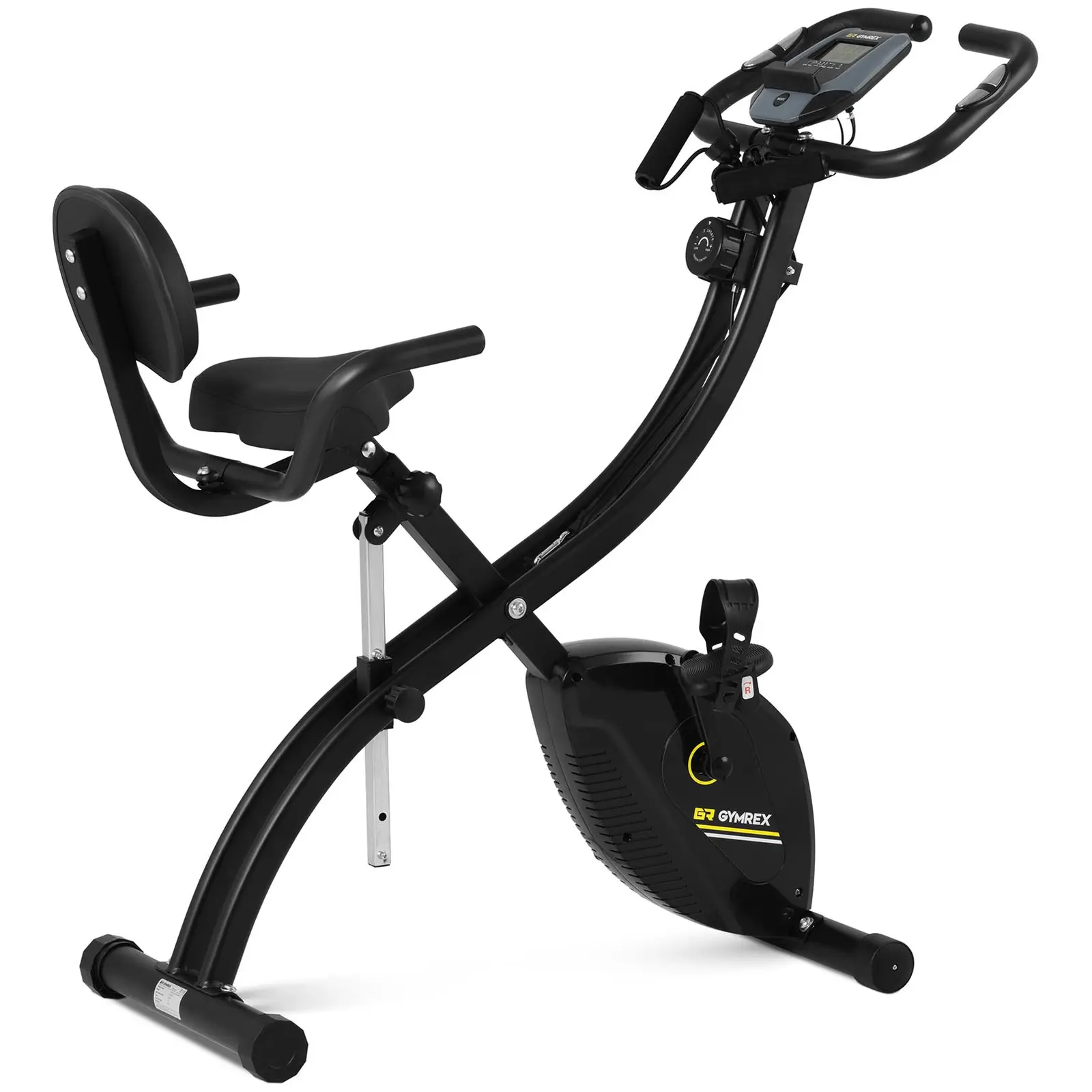 Kestävyysharjoittelua mihin tahansa aikaan: päivällä tai yöllä sekä säästä riippumatta: GR-MG13-kuntopyörällä voit vahvistaa sydäntäsi, lisätä kestävyyttäsi tai alentaa painoasi. Vain 15 minuuttia päivässä riittää elinajanodotteen pidentämiseen ja tehokkuuden parantamiseen. Avaa seuraava kuntoilukausi Gymrex-kuntopyörällä! Kuntopyörä voidaan helposti säätää haluamaasi korkeuteen, jotta kestävyysharjoitukset sujuisivat mahdollisimman miellyttävästi. Pehmustetun istuimen korkeutta voidaan säätää seitsemässä portaassa 75 ja 84 cm:n välillä. Pyörällä istuminen tuntuu miellyttävältä pitkienkin harjoitusten aikana. Selkänojan ja satulan vieressä olevat lisäkahvat lisäävät mukavuutta harjoittelun aikana. Jalkahihnoilla varustetut polkimet sekä vauhtipyörän 1,5 kg:n massa takaavat pyörien tasaisen pyörimisen ja sujuvan treenin. Lisäksi kuntopyörässä on korkealaatuinen käyttöhihna, joka on paitsi erityisen sujuva ajettava, myös helpompi säätää ja kestävämpi kuin polkupyörän ketju. Harjoituksen ja kehittymisen seuraamiseksi pyörässä on iso LCD-näyttö, jolla näkyy selkeästi harjoitusaika, nykyinen nopeus, matkan pituus, poltetut kalorit sekä pulssi. Älypuhelimen tai tabletin pidike mahdollistaa viihtyisän pyöräilyhetken sopivan laitteen kera ja tuo lisämotivaatiota ja viihdettä pyöräilyyn. Kuntoilun jälkeen pyörä on helppo taittaa kokoon. Pyörän keveyden ja kuljetuspyörien ansiosta se voidaan nopeasti asettaa sivuun. Valitut materiaalit, kuten teräs, ABS ja PVC, mahdollistavat jopa 120 kg: n kuormituksen ja takaavat laitteen pitkän käyttöiän.