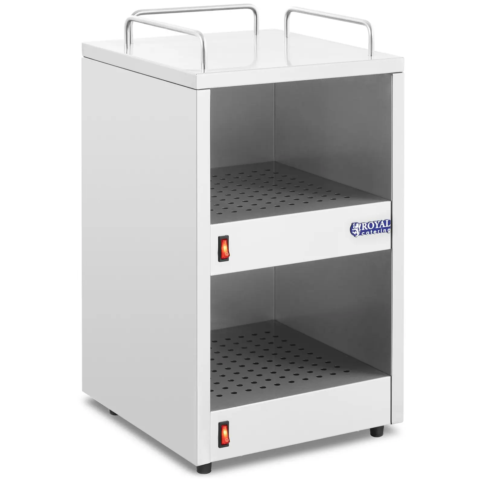 Kylmä kahvi kuuluu menneisyyteen! Kupinlämmitin tarjoaa esilämmitetyt kupit kuumien juomien nauttimiseen! Tämä laite on ihanteellinen käytettäväksi suurkeittiöissä kuppien, keraamisten astioiden tai lautasten esilämmitykseen ja lämpimänä pitämiseen. Vieraasi ilahtuvat, kun yllätät heidät esilämmitetyillä kupeilla ja lautasilla. Käytännöllinen kupinlämmitin sopii erinomaisesti häihin, juhliin ja muihin tapahtumiin. Se on välttämätön jokaiseen pitopalveluun, koska se paitsi lämmittää useita kuppeja kerrallaan myös asettaa ne kauniisti esille. Ravintolassa espressokoneen laskualusta ei usein riitä takaamaan puhtaiden, esilämmitettyjen kuppien saatavuutta kiireisinä päivinä. Kupinlämmitin tarjoaa käytännöllisen ja edullisen ratkaisun. Voit esilämmittää mukit ja kupit nopeasti ja helposti, jotta kuumat juomat pysyvät lämpiminä pidempään. Lämpimät astiat ylläpitävät ruokien lämpötilaa valmistuksen ja tarjoilun välissä ja vähentävät täten kiirettä ammattikeittiöissä. Kupinlämmittimessä on kaksi termostaattia, joilla lämmitystasot voidaan kytkeä toisistaan riippumatta päälle. Kokonaisteholtaan 140 W laite saavuttaa enintään noin 55 °C lämpötilan ja mahdollistaa siten sen sisällä olevien astioiden optimaalisen lämmittämisen. Lämmittimen säilytystasojen erityiset ilmareiät takaavat tasaisen lämmönjakautumisen koko laitteessa. Lämmittimen päällä voidaan lisäksi säilyttää tavaroita optimaalisen tilankäytön toteuttamiseksi. Siellä voit säilyttää useampia kuppeja tai lautasia käden ulottuvilla. Kolme visuaalisesti kaunista kaarta varmistavat, että astiat pysyvät varmasti lämmittimen päällä. Laadukkaan ruostumattomasta teräksestä valmistetun kotelonsa ansiosta kupinlämmitin on helppo puhdistaa ja se sopii lisäksi täydellisesti ravintolakeittiöihin. Lämmittimen sisätila on myös ruostumatonta terästä ja varustettu yhdellä välipohjalla. Molemmat tasot ovat samankokoisia ja niillä on tilaa 36 kupille – eli yhteensä 72 kupille.