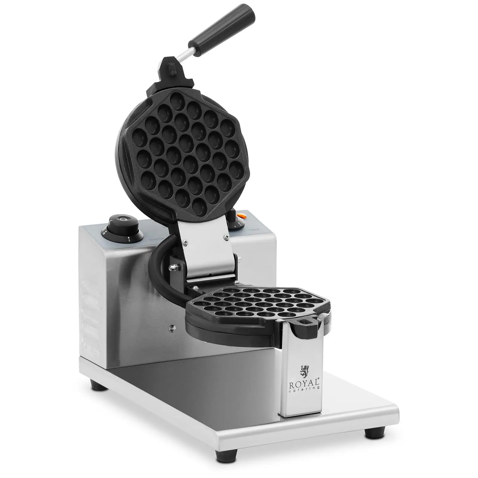 Tuoreet ja rapeat kuplavohvelit valmistuvat nopeasti ja helposti! Royal Cateringin vohveliraudalla taiot juuri leivottujen vohvelien tuoksun kahvilaasi tai ravintolaasi ja hurmaat vieraasi rapeilla ja kullanruskeilla vohveleilla. Olipa kyse sitten makeasta versiosta suklaan ja marjojen kera tai suolaisista herkuista tuoreilla yrteillä ja kinkulla – tämä laite auttaa sinua tarjoilemaan herkullisia ja monipuolisia Ø 170 mm suuria vohveleita nopeasti. Royal Cateringilta löydät varmasti kaiken, mitä tarvitset päivittäisiin ravintola-alan tarpeisiin ja muuhunkin! Aseta vain haluamasi paistolämpötila kuplavohvelikoneen säätimestä ja koneen automatiikka hoitaa lopun. Valitse halutusta ruskistusasteesta riippuen lämpötilaksi 0 – 200 °C. Vohvelikoneen paistoajan voit asettaa ajastintoiminnolla välillä 0 – 5 min. Näin voit aina säädellä optimaalisesti vohveleittesi paistoaikaa. Vohveliraudan suuri teho 1200 W mahdollistaa suuren 25 mm paksun vohvelin paistamisen nopeasti ja tehokkaasti yhdellä paistoprosessilla. Vohveliraudan erityinen rakenne on omiaan juuri kuplavohvelien valmistukseen. Laadukkaasta ruostumattomasta teräksestä valmistettu kotelo tekee vaikutuksen virheettömällä ulkonäöllään ja kestävyydellään. Paistolevyt on valmistettu alumiinista teflonpinnoitteella. Näin vohvelit irtoavat levyistä helposti, mikä tekee vohveleiden valmistamisesta hauskaa ja laitteen puhdistamisesta helppoa! Jos paistopintoihin pääsee syntymään naarmuja lukuisten käyttökertojen jälkeen, voit vaihtaa ne helposti uusiin. Tuotenumerolla 10012630 löydät oikean varaosan myymälästämme!