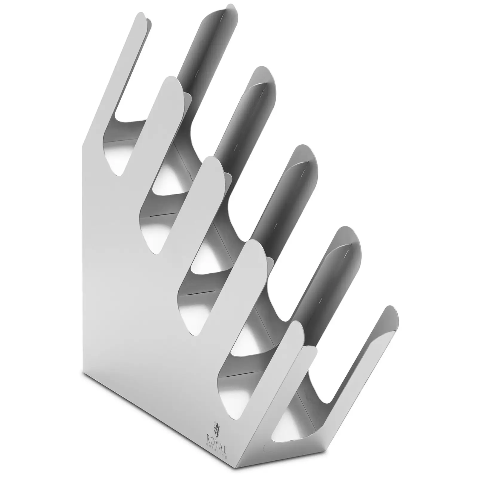 Mitä saisi olla: kahvia vai teetä? Käytännöllinen kuppijakelija pitää tarvikkeet kuumille ja kylmille juomille järjestyksessä. Royal Cateringin jakelujärjestelmässä on 4 lokeroa pahvikupeille ja vastaaville kansille. Tämä kompakti tarjoilujärjestelmä onkin ihanteellinen apuväline kahviloissa, kokoustiloissa, vastaanotoilla tai työpaikoilla. Käytännöllisessä mukinpidikkeessä on avoin ja kompakti muotoilu. Tästä syystä se sopii mille tahansa tiskille. Avoimen muotoilun ansiosta huomaat heti, kun kuppeja tai muita tarvikkeita täytyy asettaa esille lisää. Useiden lokeroiden ansiosta tarjoilet asiakkaillesi erikokoisia kuppeja ja kansia, joista he voivat valita itselleen sopivimman. Tässä mallissa kansien halkaisija voi olla enintään 100 mm. Kuppijakelija on valmistettu kestävästä ruostumattomasta teräksestä. Tämä tekee siitä erittäin kestävän ja helpon puhdistaa.