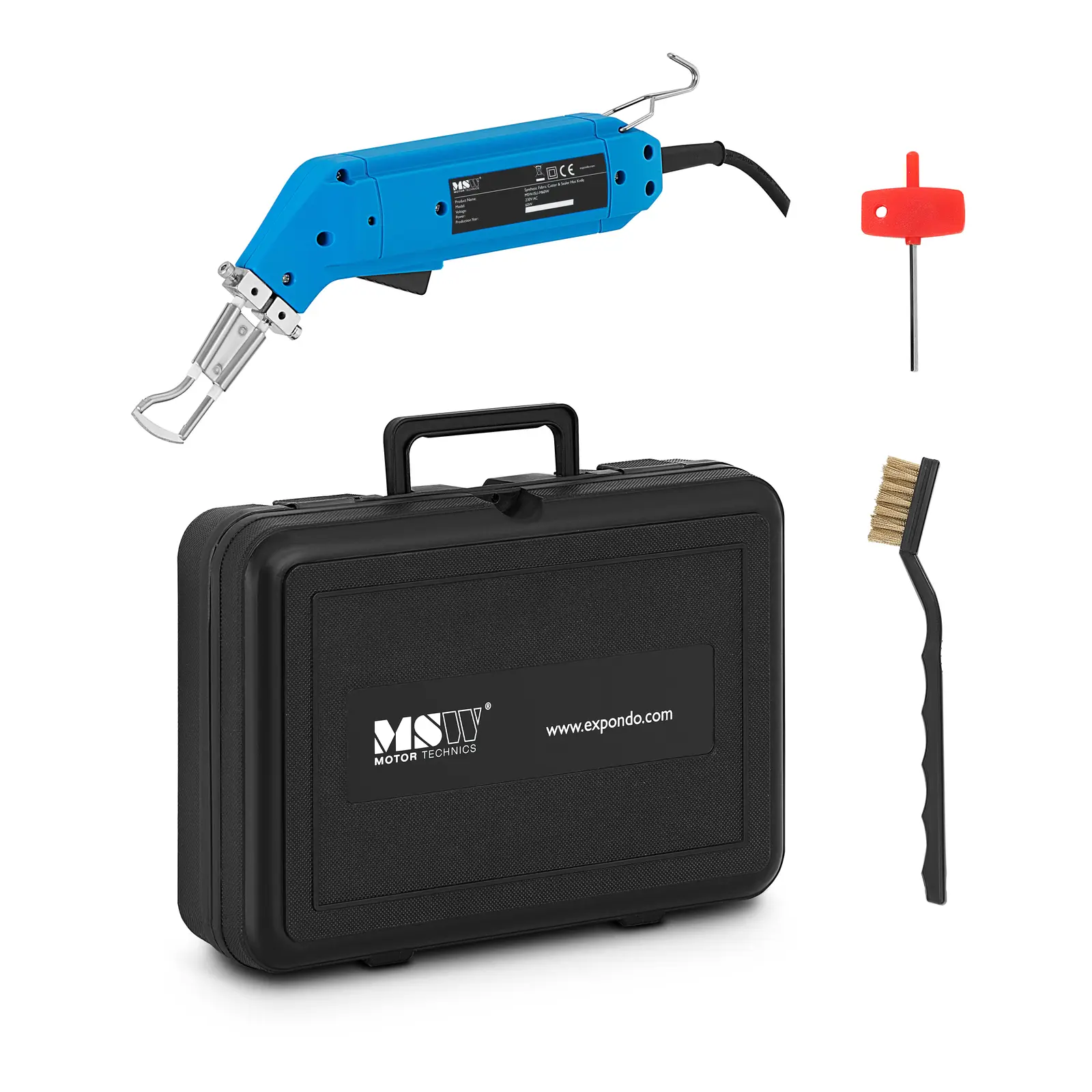 MSW-ISU-M60W-kuumaleikkuri, jossa on R-tyypin leikkuukärki, leikkaa luotettavasti köysiä ja naruja. Se sopii kuitenkin aivan yhtä hyvin myös muiden synteettisten materiaalien, kuten purjekankaiden ja remmien siistiin leikkaamiseen. Kuumaleikkuri on arvokas apuväline telakoilla, purjehdusseuroissa tai käsityöalan yrityksissä, joissa käytetään monia erilaisia köysiä tai kankaita. Laite sulattaa käsiteltävän materiaalin leikkauskohdassa ja tuottaa siten tarkkoja työtuloksia. Toimitukseen sisältyvä R-terä kuumenee tarvittavaan leikkauslämpötilaan nopeasti ja liukuu siten vaivattomasti köysien, polystyreenin tai muiden helposti sulavien materiaalien läpi ja saa aikaan siistit leikkausreunat. Lisäksi se päättää köydet leikkaamisen yhteydessä, jolloin ne eivät pääse hajoamaan. Tämän sähkötyökalun maksimaalinen leikkauslämpötila on 500 °C, ja tehokkaan muuntajansa ansiosta se lämpenee käyttövalmiiksi sekunneissa. Sisäänrakennettu ylikuumenemissuoja kytkee laitteen pois päältä, kun sen elektroniset komponentit saavuttavat 90 °C:n lämpötilan. Ergonominen yhden käden kahva ja 3 metrin virtajohto mahdollistavat erityisen joustavan käytön. Lisäksi tämä ammattitason kuumaleikkuri on erittäin kompakti, kevyt ja siinä on kätevä ripustuskahva, jonka avulla pidät molemmat kätesi vapaina kankaita tai köysiä työstäessäsi. Kuumaleikkuri on käyttövalmis nappia painamalla.