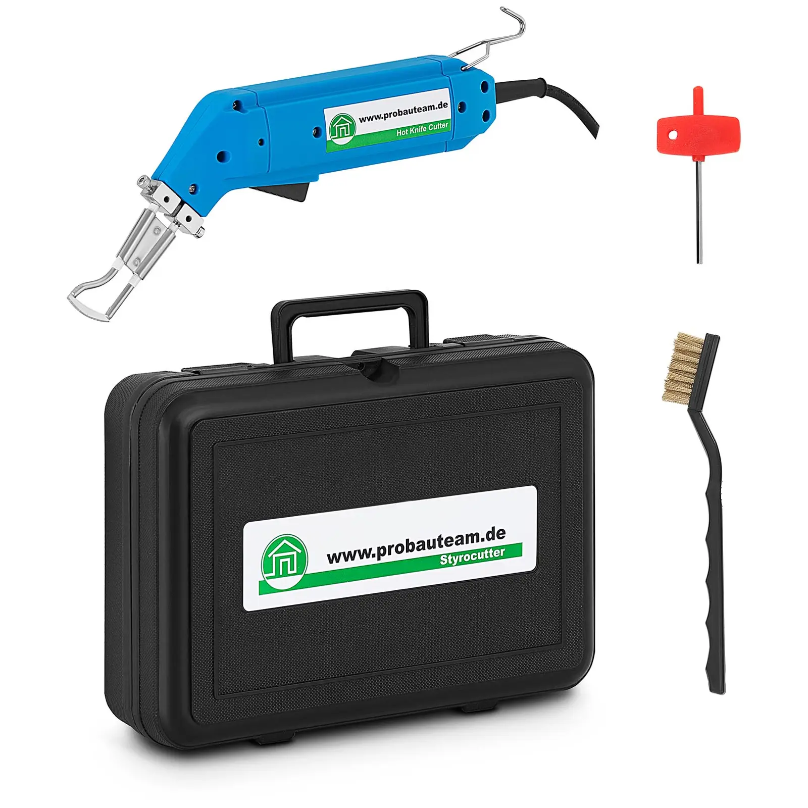Kuumaleikkurilla PBT-HN60W, jossa on tyypin R terä, katkaiset luotettavasti köydet ja narut. Leikkurilla saat leikattua myös synteettisiä materiaaleja kuten purjekangasta tai hihnoja ja leikkuureuna on aina puhdas ja tasainen. Kuumaleikkuri on arvokas apuväline telakoilla, veneveistämöissä, purjehduskouluissa tai käsiteollisissa liikkeissä, joissa on leikattava erilaisia köysiä tai kankaita. Voit vaihtaa kuumaleikkuriin erilaisen terän erilaisten köysien tai keinokuitukankaiden leikkaamista varten. Köysien lyhennys, synteettisen kankaan leikkaus tai pitkien köysien katkaisu: synteettisille materiaaleille tarkoitetuilla terillä saat aina aikaan puhtaan, tasaisen leikkuujäljen, joka ei rispaannu. Köysien ja narujen päät puristetaan leikatessa yhteen niin, että ne eivät pääse purkautumaan. Kuumaleikkuri sulattaa leikattavan materiaalin leikkauskohdalta ja saa näin aikaan tarkan ja siistin leikkausjäljen. Toimitukseen kuuluva R-terä kuumennetaan juuri ennen leikkaamista tarvittavaan leikkuulämpötilaan, jolloin se liukuu vaivattomasti köysien, styroksin ja muun helposti sulavan materiaalin läpi. Leikkuujälki on ehdottoman siisti. Muita teriä on valikoimassamme kohdassa ”kuumaleikkurit”. Sähköisen kuumaleikkurin suurin leikkauslämpötila on 500 °C, jonka laite saavuttaa sekunneissa tehokkaan muuntajansa ansiosta. Sisäänrakennettu ylikuumenemissuoja sammuttaa laitteen automaattisesti, jos sen elektroniset komponentit saavuttavat 90 °C lämpötilan. Ergonominen yhden käden kahva sekä 3 m johto tekevät työskentelystä erityisen joustavaa. Lisäksi laite on erittäin kompakti, kevyt ja siinä on kätevä sanka, johon voit ripustaa laitteen hetkeksi, jos tarvitset molempia käsiäsi suurempien kangaspalojen tai köysien käsittelyyn. Kuumaleikkuri on heti käyttövalmis vain yhtä nappia painamalla. Kuumaleikkuri voidaan varustaa myös muilla leikkauskärjillä tai terillä, jolloin sitä voidaan käyttää moneen eri tarkoitukseen. Esimerkiksi styrox-varusteiden avulla kuumaleikkurilla voidaan leikata styroksia. Tällä hetkellä on saatavilla seuraavia lisävarusteita : 10210001 (R-terä kuumaleikkuriin), 10210002 (ohjuri kuumaleikkuriin), 10210003 (F-terä kuumaleikkuriin), 10210004 (V-terä kuumaleikkuriin).