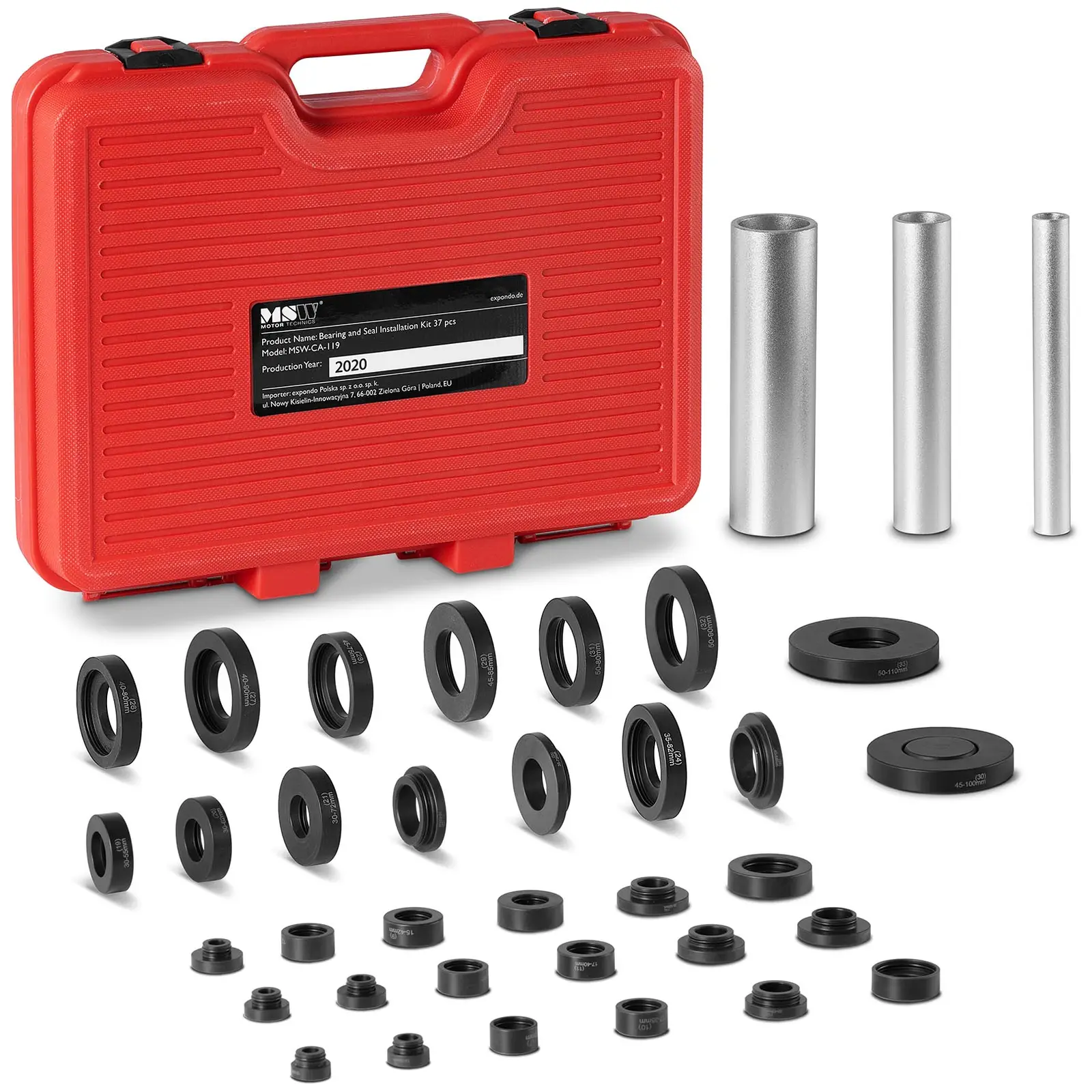 MSW-CA-119-laakerinasennussarjan avulla saat MSW: ltä ammattimaisen ajoneuvotyökalun, jolla voit suorittaa laakerien ja tiivisteiden asennuksen nopeasti, tarkasti ja turvallisesti. Sarja tarjoaa erikokoisia painekappaleita, jotka sopivat yleiskäyttöön. Lisäksi sitä voi käyttää myös holkkeihin ja hihnapyöriin. Nailoniset painerenkaat ovat erittäin iskunkestäviä ja siirtävät voiman tasaisesti laakereille niitä asennettaessa. Oikealla iskuputken ja painerenkaan yhdistelmällä varmistat, että asennusvoimat kohdistuvat laakerin renkaaseen. Näin metallien välille ei pääse syntymään suoraa kontaktia, jolloin laakerit akselit, laakerikotelot ja laakerin tiivistysrenkaat eivät vaurioiudu. Laaja toimitussarja sisältää halkaisijaltaan 10 – 90 mm:n painekappaleet sekä kaksi, 45 – 100 mm:n ja 50 – 110 mm:n puristuslevyä. Kolme seostetusta alumiinista valmistettua iskuputkea ovat erittäin iskunkestäviä ja tarjoavat sinulle parhaan keinon asentaa laakeri paikoilleen. Asentaminen tapahtuu takaiskuttomalla vasaralla (ei sisälly toimitukseen). Kaikki laajan asennustyökalusarjan osat toimitetaan käytännöllisessä kuljetussalkussa, jossa voit kuljettaa ne kätevästi myös asiakaskäynneille. Kun osia ei tarvita, ne voidaan varastoida turvallisesti salkkuun.