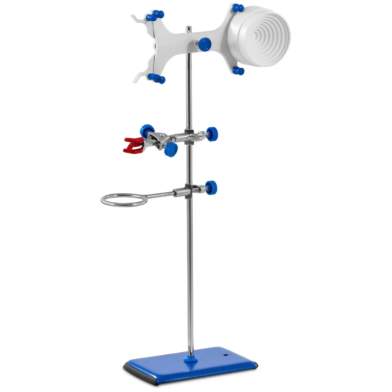 Jokaisessa laboratoriossa tarvitaan statiiveja. Ne ovat kuin ylimääräiset apukädet analyysien suorituksessa ja ne takaavat myös mittaussarjojen teossa tarvittavaa liikkumavapautta. Tällöin vankka pito on yhtä tärkeää kuin kouran joustava käyttökin. Steinberg Systemsin SBS-LS-500 laboratoriostatiivi on ihanteellinen väline täydentämään laboratoriotarvikkeitasi. Laboratoriostatiivisetti koostuu tukevasta, 200 x 125 mm valurautapohjasta, kromatusta terästangosta, siihen sopivista puristimista, byretinpitimestä ja 180 mm pituisesta putkikourasta sekä renkaasta. Laboratoriostatiivin jalusta varustettu kahdella kiinnitysreiällä, joihin tanko on kiinnitettävissä tukevasti. Täten tanko voidaan sijoittaa joko keskelle jalustaa tai sen reunaan. Sarjaa täydentää muovinen alusta. Statiivitanko tarjoaa pituudellaan riittävästi pelivaraa myös korkeussuunnassa. Puristimet, jotka kiinnittävät kouran ja renkaan, voidaan liittää halkaisijaltaan korkeintaan 20 mm oleviin tankoihin. Lisävarusteet sopivät täydellisesti laboratoriostatiiviin ja kiinnittävät luotettavasti useimpia laboratoriossa käytettäviä esineitä tai astioita. Pinnoite ei reagoi kemiallisten nesteiden kanssa ja estää samalla liukumisen. Kouran muoto sopii erityisesti lasiastioille – olipa kyseessä sitten koeputki tai Erlenmeyerpullo.
