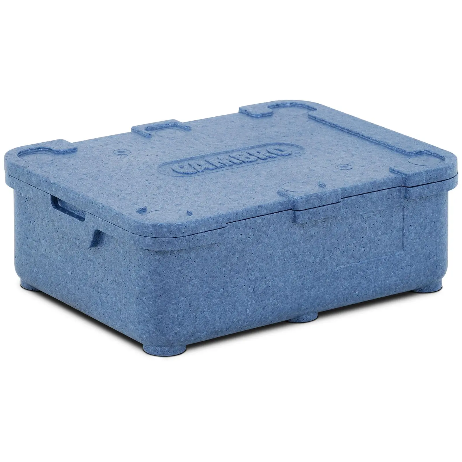 Kuuma tulisi tarjoilla kuumana ja kylmä kylmänä? Juuri tämän takaa Cambron eristetty Cam GoBox -lämpölaatikko ruoan lämpimänä pitämiseen. Lämpimät ja kylmät ruoat sekä juomat ja hedelmät tai leipä voidaan säilyttää neljässä erillisessa lokerossa samanaikaisesti. Laatikko on ihanteellinen aterioiden toimittamiseen kouluihin, sairaaloihin tai hoitolaitoksiin, mutta sopii käytettäväksi myös catering-palveluissa tai ravintoloissa, joissa on toimituspalvelu. Ylhäältä pakattavassa sinisessä ruokalaatikossa on kolme lokeroa jäähdytetyille aterioille ja juomille tai ruokailuvälineille sekä erillinen eristetty lämpölokero. Elintarvikkeiden asento, koko ja järjestys on suunniteltu kaikki huomioon ottaen: Astiat, joiden mitat ovat 19 x 19 cm, mahtuvat lämpölokeroon. Jäähdytysastian säilytyslokero on hiukan tilavampi: 21 x 21 cm. 18 x 8 cm lokero voidaan täyttää hedelmällä tai leivällä ja 21 x 8,5 cm lokero on varattu juoman tai ruokailuvälineiden kuljetusta varten. Kaikki lokerot ovat 11 cm korkeat, ja ne mahdollistavat ruokien säilytyksen tilaa säästäen. Jotta lähetin ei tarvitse nostaa kantta tarkistaakseen toimitus uudelleen ennen lähtöä, tässä lämpölaatikossa on käytännöllinen etikettilokero laskuille, kuiteille tai vaikkapa ruokalistoille. Höyhenenkevyessä termolaatikossa on kaksi sivuilla sijaitsevaa ergonomista kahvaa sekä kantohihna. Tehokkaan korkealaatuisen vaahtomuovieristyksen avulla laajennettua polypropeenia hyödyntäen kuumat elintarvikkeet pysyvät kuumina ja kylmät pysyvät kylminä kahden tunnin ajan. Suuresta materiaalitiheydestä johtuen laatikko on elintarviketurvallinen ja hajuton. Muut edut: Voit pinota useita jakelulaatikoita päällekkäin ja toimittaa siten useita toimituksia kerralla. Tämä ei vain nopeuta työprosessejasi ja säästä rahaa sekä aikaa, vaan tekee myös säilytyksestä erittäin helppoa. Erityisen kestävä ja pitkäikäinen lämpölaatikko suojaa sisältöä vahingoilta. Lisäksi CFC-yhdisteetön ja 100% kierrätettävä kuljetuslaatikko on helppo puhdistaa ja on jopa tiskikonepestävä.