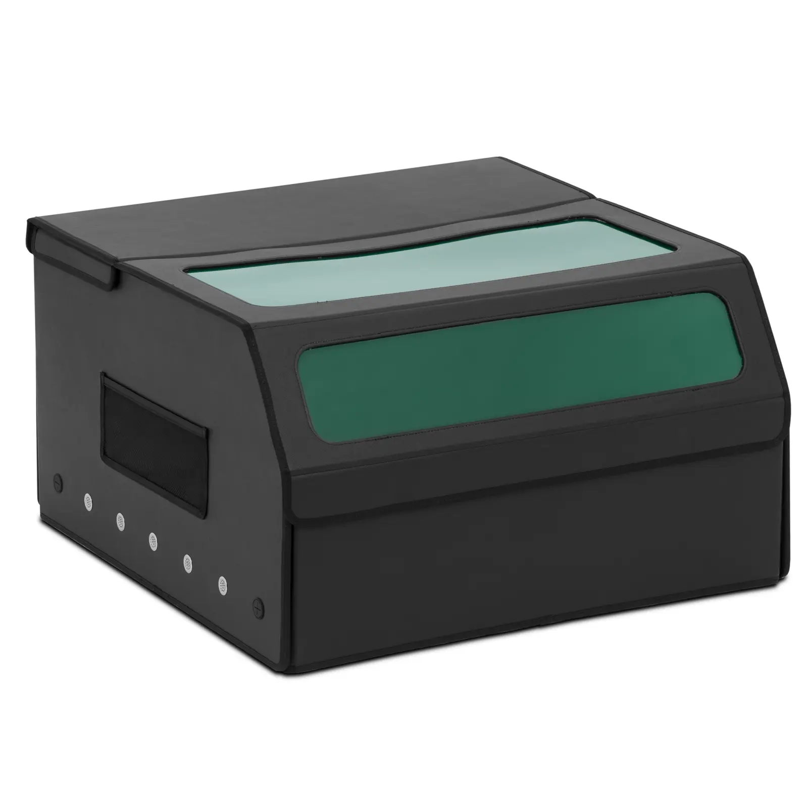 Suojaa laserkaiverruskoneesi liialliselta savunmuodostukselta ja haitallisilta ympäristövaikutuksilta Steinberg Systemsin suojakuvulla! Näin varmistat, että kaiverrusprosessi toimii häiriöttä, ja että kaiverruskoneesi saavuttaa aina parhaat lopputulokset. Samalla suojakupu antaa sinulle optimaalisen näkymän kaiverrusprosessiin vaarantamatta silmiäsi. Suojakupu on varustettu kahdella PVC-ikkunalla, jotka heikentävät laserin kirkasta valoa. Ne ovat kuitenkin tarpeeksi läpinäkyviä, jotta suojan sisätila näkyy hyvin. Kulmikas muotoilu mahdollistaa näkymän ylhäältä ja sivulta, joten pitää kaiverrusprosessin edistymistä silmällä optimaalisesta kulmasta. Kuvun runko koostuu vakaasta, paloturvallisesta, kennolevyn ja Oxford-kankaan sekoituksesta, jonka ulkoseinät muodostavat suljetun sisätilan. Koska lasersäteillä kaiverrettaessa syntyy savua, tämä suojakupu tarjoaa käyttöösi käytännöllisen imujärjestelmän. Se johtaa tuulettimen avulla pöly- ja savuhiukkaset hallitusti ulos koneen sisätiloista 1,9 metriä pitkän letkunsa kautta. Näin voit pitää kaiverrusprosessia vapaasti silmällä, ja pysyt samalla suojassa myrkyllisiltä höyryiltä. Kuvun kokoontaitettava runko on helppo kuljettaa ja varastoida. Sen mitat vastaavat laserkaiverruskonetta SBS-LEM-200X (tuotenumero EX10031290). Kupu sopii kuitenkin käytettäväksi myös muiden, sitä pienempien mallien kanssa.