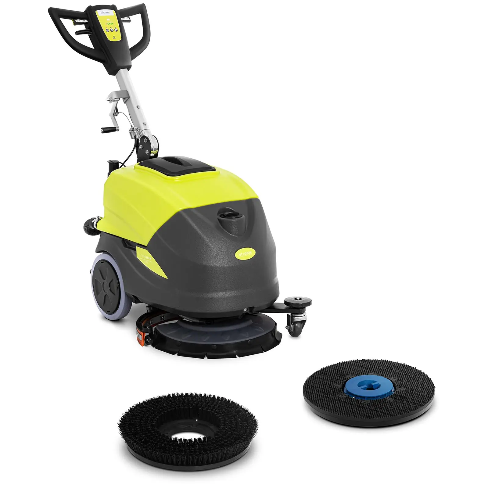 Puhdista jopa suuret lattia-alat akkukäyttöisellä lattianpesukoneella TOPCLEAN 850 myös paikoissa, joissa ei ole virtalähdettä. Lattianpesukoneen akun käyttöaika on jopa 2 tuntia, missä ajassa puhdistat myös supermarkettien tai varastohallien vaativimmatkin lattiat. Kone saa suurialaiset lattiat kiiltämään niin autokaupoissa, ravintoloissa kuin myös museoissa. Akkukäyttöinen lattianpesukone vakuuttaa 850 W kokonaistehollaan, josta 155 r/min nopeudella toimiva harja käyttää 550 W ja likaisen veden perusteelliseen imemiseen kuluu 300 W. Hyvin yhteensovitetut tehoarvot mahdollistavat 1 450 m Pyörät ovat tarpeeksi elastiset, jotteivät ne vahingoita lattiaa pesun aikana. Takapyörät ja koneen tasapainoinen rakenne parantavat ohjattavuutta ja näin ollen koneen liikuttelu sujuu varmasti myös ahtaissa paikoissa. Lattianpesukone on suunniteltu mukava- ja helppokäyttöiseksi ja siinä harjan ja imulastan säätö sujuu vain muutamalla kytkimellä. Säädettävä, ergonominen kahva mahdollistaa laitteen mukauttamisen sopivaksi erikokoisille käyttäjille. Harja- ja laikkaosat voidaan tarvittaessa vaihtaa ilman työkaluja, joten laitteen huolto on erittäin vaivatonta. Samoin kuminen imulasta on vaihdettavissa yksinkertaisesti siipimutterien ansiosta. Optimaalisen puhdistustuloksen saavuttamiseksi lattianpesukone on varustettu sekä puhdas- että likavesisäiliöillä. Molemmat säiliöt ovat täytettävissä tai tyhjennettävissä käden käänteessä. Polyuretaanista valmistetut pyörät ovat erittäin kestävät, joten laite sopii ongelmitta myös pitkäkestoiseen käyttöön.
