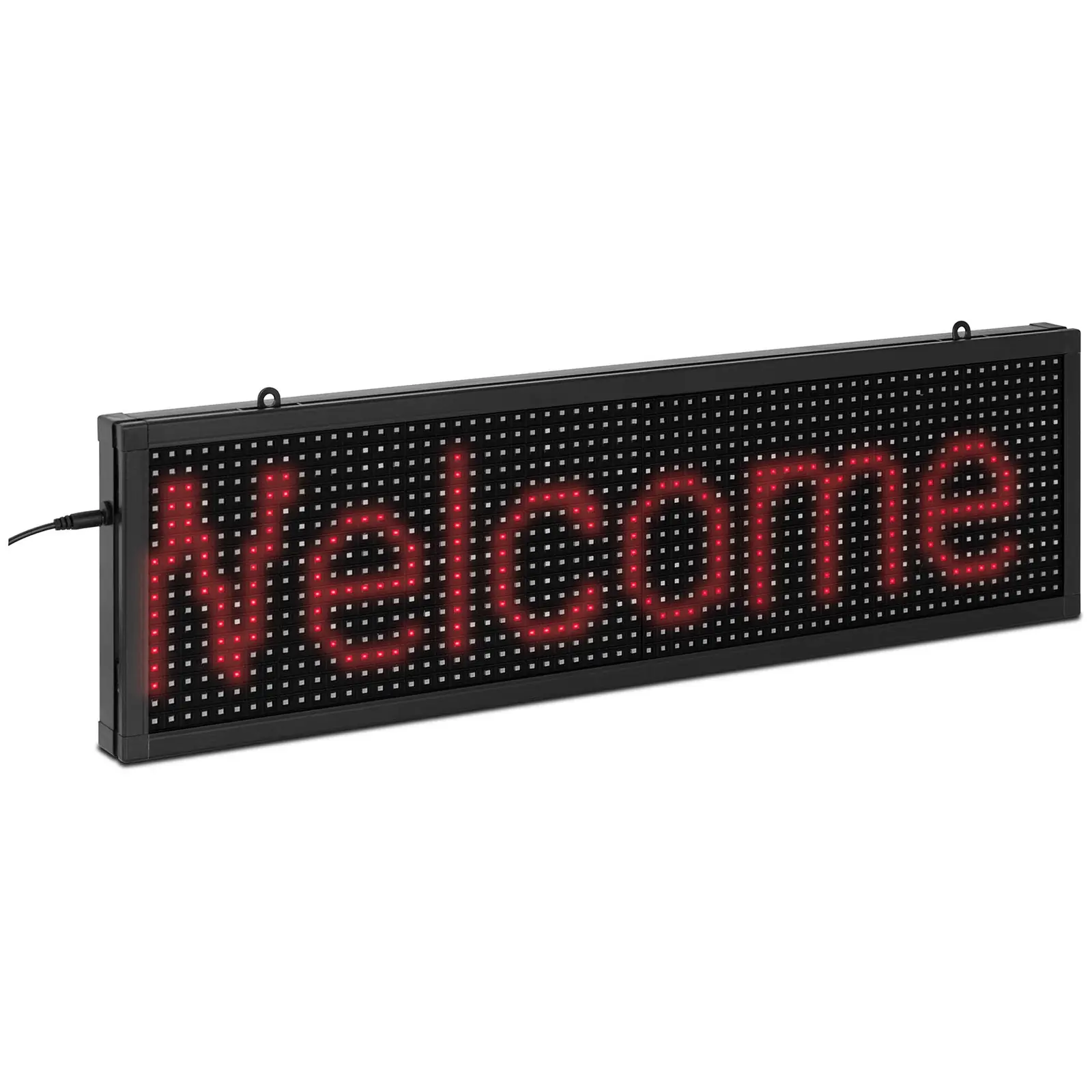 Herätä ohikulkijoiden huomio Singerconin LED-mainostaululla SIN-ALD-1000. Iskulauseet, logot, tarjoukset tai tiedot voidaan helposti ohjelmoida matkapuhelimella tai tabletilla, ja ne on helppo lukea jopa 3 m etäisyydeltä. 1024 punaisella LEDillä varustettu LED-valotaulu kiinnittää kaikkien huomion tarjoukseesi ja lisää potentiaalisten asiakkaiden huomiota! 1024 punaisen LED-valon ansiosta – 64 vaakasuunnassa ja 16 pystysuunnassa – jopa 60 yksittäistä kuvaa sekunnissa, joten monimutkaisetkin viestit voidaan näyttää luettavasti. LED-taulu asennetaan nopeasti ja kokonaismitat ovat 670 x 190 x 40 mm tilaa säästävällä tavalla. LED-valomainosta ohjataan sovelluksella ”Fkshow”, joka on saatavana vastaavissa myymälöissä sekä Android- että iOS-laitteille. Täällä voidaan asettaa erilaisia ohjelmia, asettaa ajastimia tai tarvittaessa hallita useita valotauluja. Teholtaan 10 W olevan LEDin käyttäminen valonlähteenä varmistaa alhaisen energiankulutuksen ja pysyvästi alhaiset käyttökustannukset. LED-taulu on tarkoitettu sisäkäyttöön. Herätä huomiota ja välitä henkilökohtainen viestisi, ajankohtaiset tiedot tai erikoistarjoukset Singerconin LED-mainostaululla!