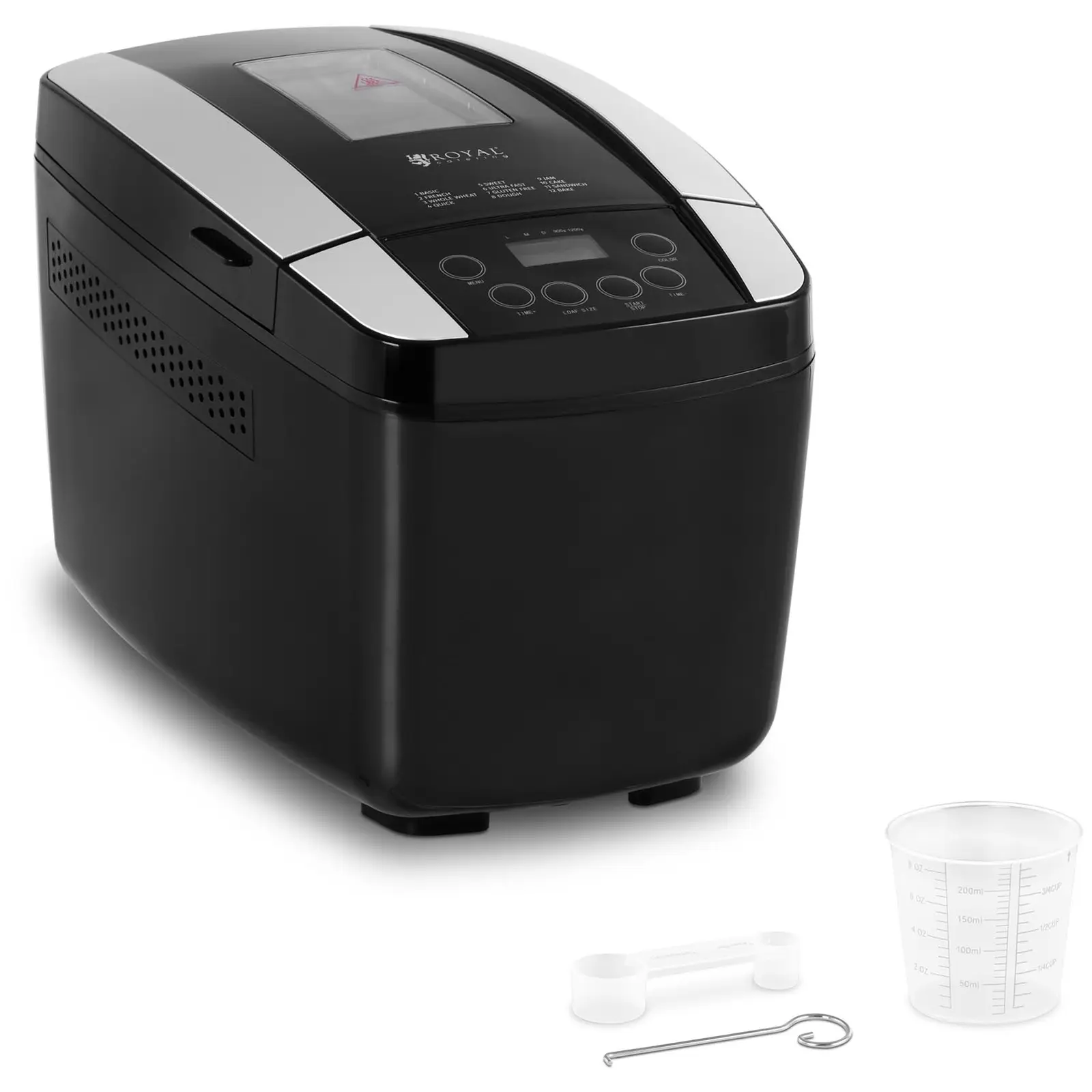 Haluatko herätä aamulla tuoreen leivän tuoksuun tai hemmotella vieraitasi kahvilassa? Se ei ole enää ongelma korkealaatuisten keittiökoneiden asiantuntijoiden, Royal Cateringin leipäkoneella RC-BM01. Säästä matka leipomoon ja nuku muutama minuutti kauemmin -leipäkone huolehtii leivästä. 800 W tehokkaassa leipäkoneessa on 12 esiasetettua automaattista ohjelmaa. Ja näin helposti se käy: Täytä sopivat ainesosat leivän tyypistä riippuen sen sisällä olevaan 2,5 l astiaan. Kun olet valinnut ohjelman, tämä kotiapulainen tekee loput puolestasi: Kaikki sekoitetaan perusteellisesti ja vaivataan täydelliseksi taikinaksi esimerkiksi vehnä tai täysjyväleipää varten. Voit leipoa leivän välittömästi tai voit viivästyttää varsinaisen leivontaprosessin aloittamista sisäänrakennetulla ajastimella enintään 13 tuntia seuraavaan aamiaiseen. Kolmen eri ruskistustason avulla voit valmistaa leivän täysin makusi mukaisesti: Valitse vaalea, keskikokoinen ja tumma kuori. Automaattinen lämpimänäpitotoiminto pitää leivän lämpimänä 1 h leivontaohjelman päättymisen jälkeen. Voit tarkkailla leivonnaisesi kypsymistä kannen läpi. Helposti luettavassa LCD-näytössä näkyvät kaikki toiminnot, ohjeet ja virheilmoitukset yhdellä katsauksella. Ja jos odottamaton sähkökatko tapahtuu: Älykäs leipäkone tallentaa kaikki valitut asetukset korkeintaan 10 minuutiksi. Näin mikään ei voi estää kotitekoisen leivän tuomaa nautintoa. Leipäkone on myös ihanteellinen laite allergikoille, joiden täytyy syödä esimerkiksi gluteenittomasti. Leipäkoneen avulla voit itse päättää mitä ainesosia käytät. Hyvää ruokahalua!