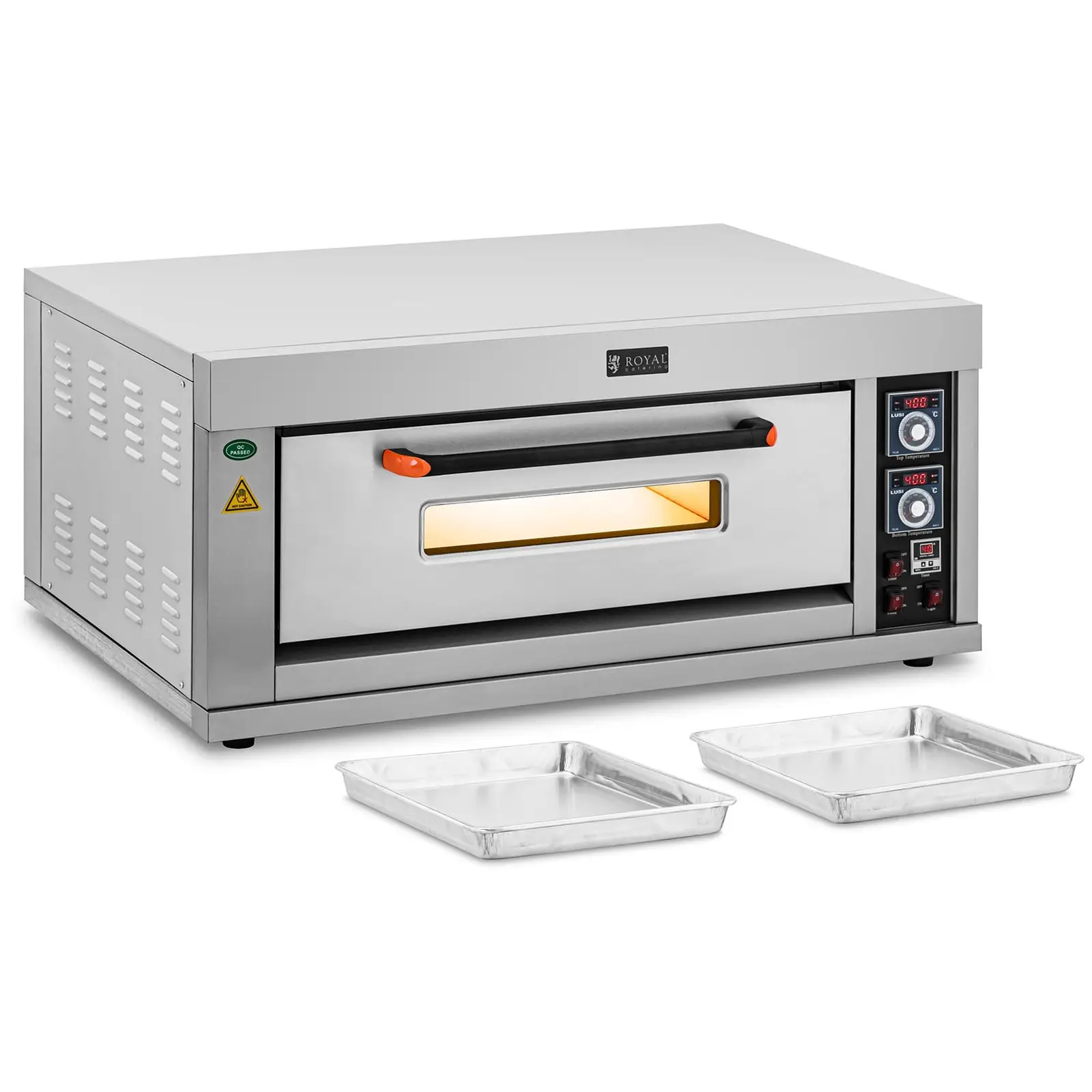Royal Cateringin leipomouuni sopii monenlaisten leivosten ammattimaiseen valmistukseen. Pienestä koostaan huolimatta uuni edustaa ravintolaitteiden huippulaatua. Se onkin ihanteellinen valinta leipomoihin, kahviloihin, konditorioihin ja muihin ravintola-alan yrityksiin. Tämän käytännöllisen leipomouunin ylä- ja alalämpö ovat erikseen säädettävissä. Lopputuloksena on pellillinen rapeapohjaisia leivonnaisia, jotka kruunaa mehevä täyte! Uuni tarjoaa käyttöösi vaikuttavat 6600 W tehoa, minkä ansiosta se kuumenee nopeasti ja luotettavasti jopa 0-400 °C:n lämpötilaan. Suuri sisäkammio tulenkestävällä pinnalla varmistaa optimaalisen lämmön jakautumisen sekä maukkaat leivät ja muut leivonnaiset. Kompaktin kokonsa ansiosta tämä paistinuuni sopii pienempäänkin tilaan ja tarjoaa silti paikan kahdelle 60 x 40 cm suurelle uunipellille. Hyödy leipomouunin helppokäyttöisyydestä! Erityisen suuri luukku tekee leipien ja leivonnaisten uuniin asettamisesta ja ulos ottamisesta turvallista korkeasta kuumuudesta huolimatta. Kestävän, ruostumattomasta teräksestä valmistettu kahva helpottaa lisäksi uunin käyttöä hektisessä ravintola-arjessa. Karkaistua lasia oleva ikkuna ja sisävalaistus pitävät leivonnaiset koko ajan selkeästi näkyvillä, mikä takaa täydellisen paistoasteen joka kerta. Huomautus: Tämä laite edellyttää 400 V:n jännitettä; vastaava pistoke ei sisälly toimitukseen, ja se on hankittava erikseen.