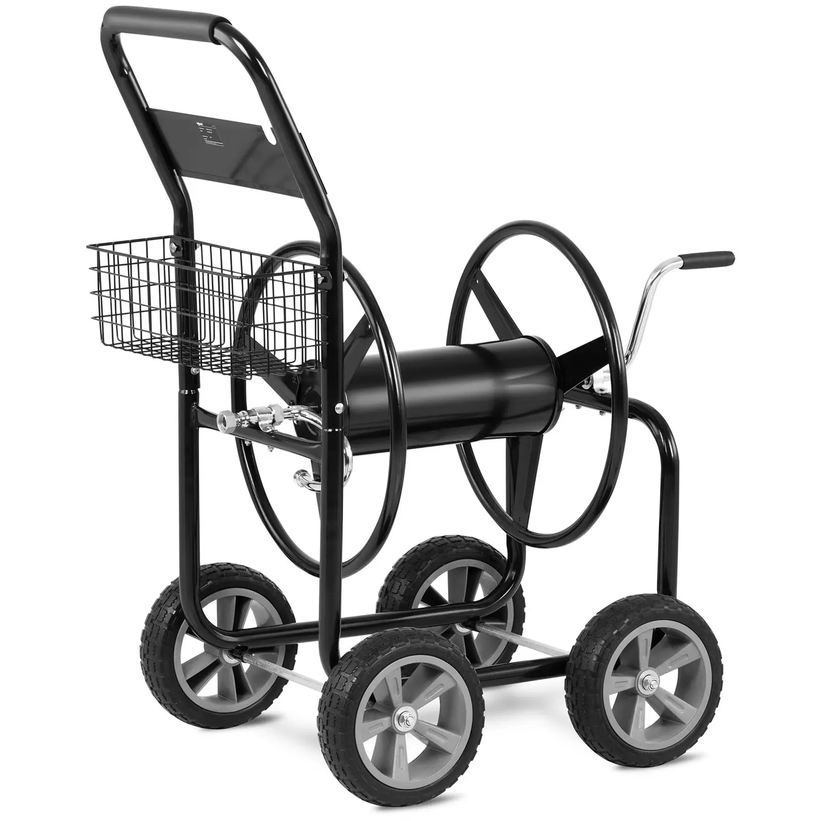 Älä anna puutarhaletkusi vaikeuttaa töitäsi vaan kelaa se näppärästi HT-LOUIS 100 -letkukärryn ympärille. Puutarhaletkukärryssä letkut ovat juuri oikealla paikallaan, olipa kyse varastoinnista tai kuljetuksesta. Voit kuljettaa kärryä mukavasti sinne, missä sitä juuri tarvitsetkin, ja kelaa letku esiin kasvimaalla tai puutarhassa muutamassa sekunnissa. Puutarhan kastelu voi olla niin helppoa! Tukevasta teräksestä valmistetun puutarhaletkukärryn rakenne on vakaa, kestävä ja tarjoaa lukuisia lisäominaisuuksia, jotka helpottavat puutarhatyötäsi. Luistamattoman kahvan ja neljän suuren muovipyörän ansiosta puutarhaletkuvaunua on helppo ohjata myös epätasaisessa maastossa. Neljän pyörän ansiosta vakaus on myös merkittävästi parempi verrattuna kaksipyöräisiin letkukärryihin. Kahvasta löytyy myös kori, jota voit käyttää puutarhatarvikkeille tai työkaluille. Letkun tela on varustettu kätevällä vivulla, jolla voit avata letkun nopeasti. Telan rakenteen ansiosta jopa 90 metrin puutarhaletkut voidaan kelata ongelmitta, ilman solmuja tai muita kiertymisiä. Integroidulla liitosletkulla vesiletku voidaan liittää nopeasti vesiliittymään.