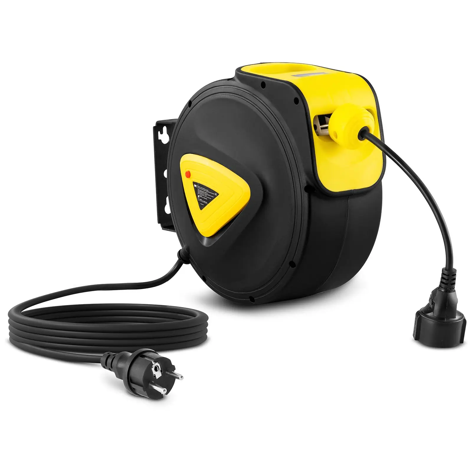 Kun pistorasiaa ei löydykään läheltä, ovat jatkojohdot sikinsokin lattialla tiellä ja aiheuttavat kompastumisvaaran. Mutta tähän on olemassa kätevä ratkaisu – MSW: n seinään tai kattoon kiinnitettävä automaattinen kaapelikela. Hyödynnä vapaa tila parhaalla mahdollisella tavalla, ja pidä aina virtajohto käsiesi ulottuvilla. Kelassa on yksi 3 metrin sähköjohto pistorasiaa varten ja 20 m pitkä ulos vedettävä jatkojohto laitteitasi varten, jonka saa vedettyä kelasta ulos tarpeen mukaan. Kaapelikelan voi kiinnittää pidikkeestään kattoon tai seinään paikan päällä vallitsevien olosuhteiden mukaisesti. Näin sinulla on käytettävissäsi joustava virtalähde, joka ei synnytä turhaa sotkua lattialle. Johtojen kelaaminen vaatii harjoittelua ja siitä huolimatta jopa mekaanisilla letkukeloilla on taipumus kiertyä. Tämä työ voisi kuitenkin olla niin yksinkertaista. Kun kelassa on jousikäyttöinen sisäänvetomekanismi, johto asettuu kelalle käden käänteessä. Voit vetää kelalta juuri tarpeidesi verran johtoa. Jokaisella johtometrillä on yksi tai kaksi lukituspistettä, joiden avulla voit määrittää johdon pituuden. Koska kaapelikela kiinnitetään kattoon tai seinään, voit käyttää johtoa myös vastakkaisessa suunnassa lukitsemalla johdon tiettyyn pituuteen. Automaattinen kaapelikela pitää huolen työpisteesi siisteydestä ja turvallisuudesta, ja käytettävissäsi on aina joustava virtalähde ilman, että lattialla mutkittelevat jatkojohdot ovat tielläsi. Vaikka tarvitsisitkin ylimääräistä virranlähdettä vain silloin tällöin, on virtajohto suojassa odottamassa letkukelassa sen seuraavaa käyttökertaa. Tätä automaattista kaapelikelaa ei ole suunniteltu ammattikäyttöön.