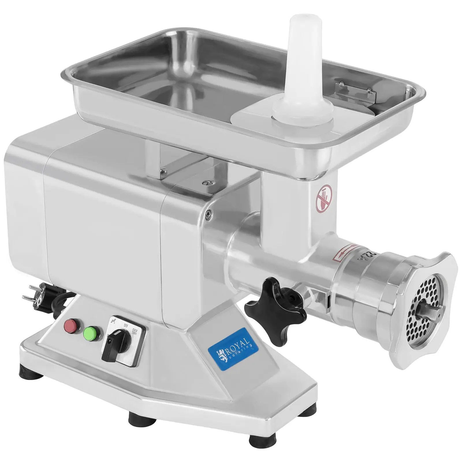 Royal Cateringin RCFW 220EXPERT -lihamylly suunniteltiin ammattimaista käyttöä varten. Se on valmistettu korkealaatuisista ruostumattomasta teräksestä ja alumiinista, ja kestää sen vuoksi hyvin haitallisia ympäristövaikutuksia. Expert-sarja on kehitetty vastaamaan korkeaa vaatimustasoa. RCFW 220EXPERT -lihamyllyn toimitusvarustus on muita malleja laajempi. Lisäksi sen myllyosa on sekä vahvempi että toiminnoiltaan monipuolisempi: Siihen voi asentaa 2 terää ja 3 levyä samanaikaisesti. RCFW 220EXPERT -lihamyllyn työteho on 3,6 kg/min. Toimitukseen kuuluu kolme reikälevyä: kaksi 8 mm reikälevyä, yksi 4,5 mm reikälevy sekä 36 mm x 16 mm esileikkuri. Sen mukana toimitetaan myös kaksi leikkuuterää. Levyt on helppo vaihtaa, ja myös niiden puhdistaminen on vaivatonta, koska niihin ei juurikaan tartu lihanjäänteitä. Myös muovinen survin toimitetaan laitteen mukana. Se takaa turvallisuutesi lisäksi myös sen, että lihan syöttäminen myllyyn on nopeaa ja tehokasta. Lihamyllyn kuoren valmistamisessa on käytetty korkealaatuista alumiiniseosta. Laite vakuuttaa toimivuudellaan ja vankkarakenteisuudellaan. Se on uskomattoman kestävä. Vaikka RCWF 220EXPERT -lihamyllyn toimintateho on huomattavan korkea, 1100 W, se ei juurikaan tuota melua. Äänettömyyden mahdollistavat muun muassa erityinen öljykylpy sekä uudenaikainen hammaspyörävaihteisto. Lihamyllyllä on kumijalat, joiden ansiosta se seisoo tukevasti eikä liu’u.