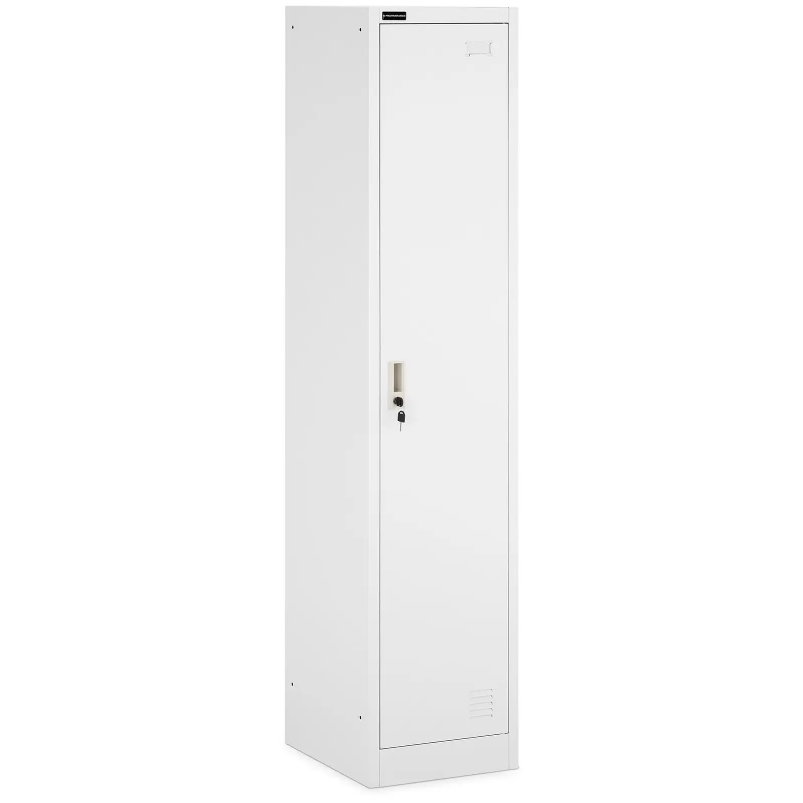 Halusitpa sitten säilyttää puhelintasi, tärkeitä asiakirjoja, lompakkoa tai muita henkilökohtaisia arvotavaroitasi turvallisesti – tilava Fromm STAR_MCAB_17 mahdollistaa tämän lujatekoisten teräsoviensa takana. Toimistokaappi on huomiota herättämättömän harmaa, joten se sulautuu jokaiseen ympäristöön. Vankan rakenteensa ja laadukkaan mekaanisen lukituksen ansiosta, johon on kaksi avainta, lokeron sisältö on suojattu luvattomalta käytöltä. Tämä tekee kaapista välttämättömän huonekalun jokaisessa toimistossa, työpajassa ja kirjastossa. Kätevää: Pienen ovi-ikkunan, vaatetangon sekä koukun ansiosta tämä sisämitoiltaan 33 x 42,5 x 168 cm:n kaappi sopii täydellisesti vaatekaapiksi vaikka työvaatteiden säilytykseen. Tuuletusaukot huolehtivat kaapin sisätilan ilmanvaihdosta. Teräksestä valmistettu harmaa monitoimikaappi on päällystetty kestävällä epoksihartsilla. Näin lukittava arkistokaappi soveltuu myös ankarampiin ympäristöihin, kuten teollisuushalleihin tai verstaisiin kärsimättä siitä. Kaapin vaikuttava maksimikuormitus on 100 kg ja kumpikin hylly kannattelee enintään 20 kg. 38 cm leveä metallikaappi on helppo koota ruuvein ja pystyttää selkeän käyttöohjeen avulla. 1, 8 m:n korkeudellaan kaappi tarjoaa runsaasti säilytystilaa, mikä rikastuttaa kaikkia toimistoja. Muovijalat takaavat tukevan jalustan ja samalla suojaavat lattiaa naarmuilta ja muilta vaurioilta. Huomio:Tuote on koottava toimituksen jälkeen.