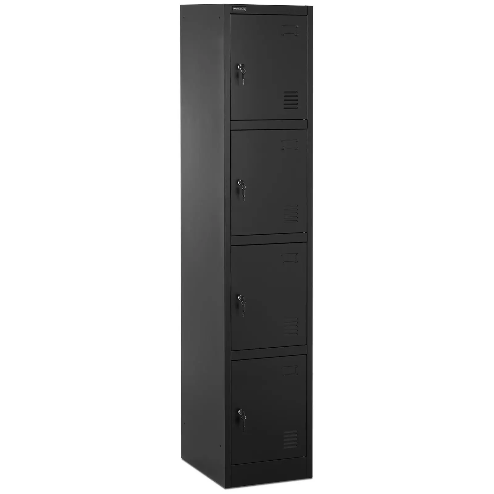 Halusitpa sitten säilyttää puhelinta, tärkeitä asiakirjoja, lompakkoa tai muita henkilökohtaisia arvotavaroita turvallisesti – tilava Fromm & Starck lokerokaappi pitää omaisuutesi turvassa 4 lukittavan oven takana. Kaapin elegantti antrasiitin ja harmaan väriyhdistelmä korostaa monenlaista sisustusta ja sopii mihin tahansa toimistoon. Tässä lukittavassa pukukaapissa on vankka rakenne ja 4 erikseen lukittavaa lokeroa. Siksi se on välttämätön valinta jokaiseen toimistoon, työpajaan ja kirjastoon. Toimitamme jokaiselle lokerolle kaksi avainta. Näin voit suojata omaisuuttasi tehokkaasti. Käytännöllistä: nimikyltit auttavat pukukaapin käyttäjiä tunnistamaan oman hyllykkönsä. Lisäksi tuuletusaukot huolehtivat pukuhuoneen kaapin sisätilan ilmanvaihdosta. Jokaisessa lokerossa on myös vaateripustin ja hylly. Valitse nyt Fromm & Starck lukollinen lokerokaappi teollisuustarvikevalikoimastamme, ja saat vakaan ja erityisen kestävän tuotteen, jonka kokonaiskantavuus on jopa 80 kg. Vankka monitoimikaappi on valmistettu 0,6 mm paksusta teräksestä epoksihartsipinnoitteella. Yksinkertaisen käyttöohjeen ja kaapin mukana toimitettavan asennusmateriaalin avulla voit koota metallikaapin nopeasti ja helposti niin, että se on käyttövalmis käden käänteessä.