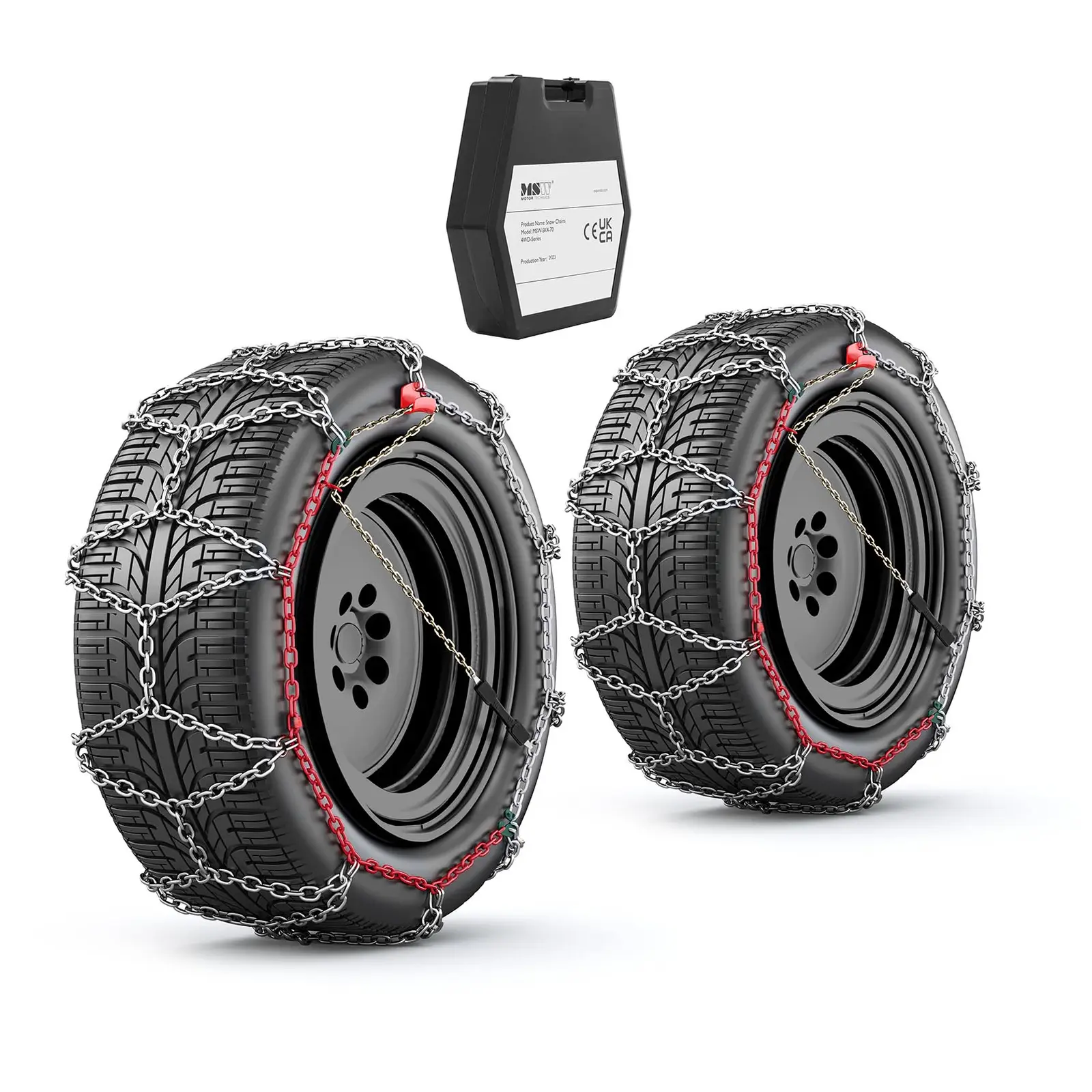 Parhaidenkaan talvirenkaiden pito ei aina riitä saamaan autoasi liikkeelle. Varsinkin mäkisessä maastossa lumi ja jää voivat aiheuttaa ylitsepääsemättömän esteen myös kitka- ja nastarenkaille. Myös nelivedolle sopivien lumiketjujen avulla takaat vetävien pyöriesi luotettavan pidon. Asetettuasi ne renkaiden ympärille matka voi jatkua maksiminopeudella 50 km/h. Lumiketjut täyttävät EU-standardin EN 16662-1 vaatimukset, ja ne on suunniteltu tieliikenteeseen Euroopan alueella. Käytä ketjuja vain jäisillä tai lumisilla teillä. Jotta ketjut välittäisivät renkaiden työntövoiman tienpintaan mahdollisimman hyvin, on oikean koon valinta tärkeää. Tämä malli soveltuu ajoneuvoille, joiden renkaiden mitat ovat: 750×168. 5 r17. 57 r19. 5225/75 r17. 5235/65 r17245/70 r16235/60 r18 Selkeiden käyttöohjeiden avulla voit asettaa auton lumiketjut nopeasti vetäviin pyöriin. Ajoneuvon mallista riippuen joko eteen tai taakse. Jos kyseessä on neliveto, suosittelemme ostamaan myös toisen sarjan ja asentamaan ketjut kaikkiin neljään pyörään. Nämä auton lumiketjut 15″” renkaille on erittäin helppo asentaa selkeiden, kuvitettujen ohjeiden, värikoodattujen osien sekä muovitetun vaijerin ansiosta. Ketjun lenkkien paksuus on 16 mm. Niiden epäsymmetrinen, timantinmuotoinen kuvio estää ajoneuvon liukumisen, erityisesti käännyttäessä. Galvanoidusta seosteräksestä valmistetun vankan rakenteen ansiosta matka jatkuu turvallisesti myös epätasaisessa maastossa. Lisäksi galvanointi estää korroosiovaurioita. Ketjujen laadukas työstö erottaa ne selkeästi halvemmista malleista. Lisäksi toimitukseen sisältyy neljä varalenkkiä hätätilanteita varten, jos yksi lenkeistä katkeaa liian suuren rasituksen vuoksi. Ketjun kuljettamisen ja säilyttämisen helpottamiseksi se toimitetaan kestävässä muovilaatikossa.