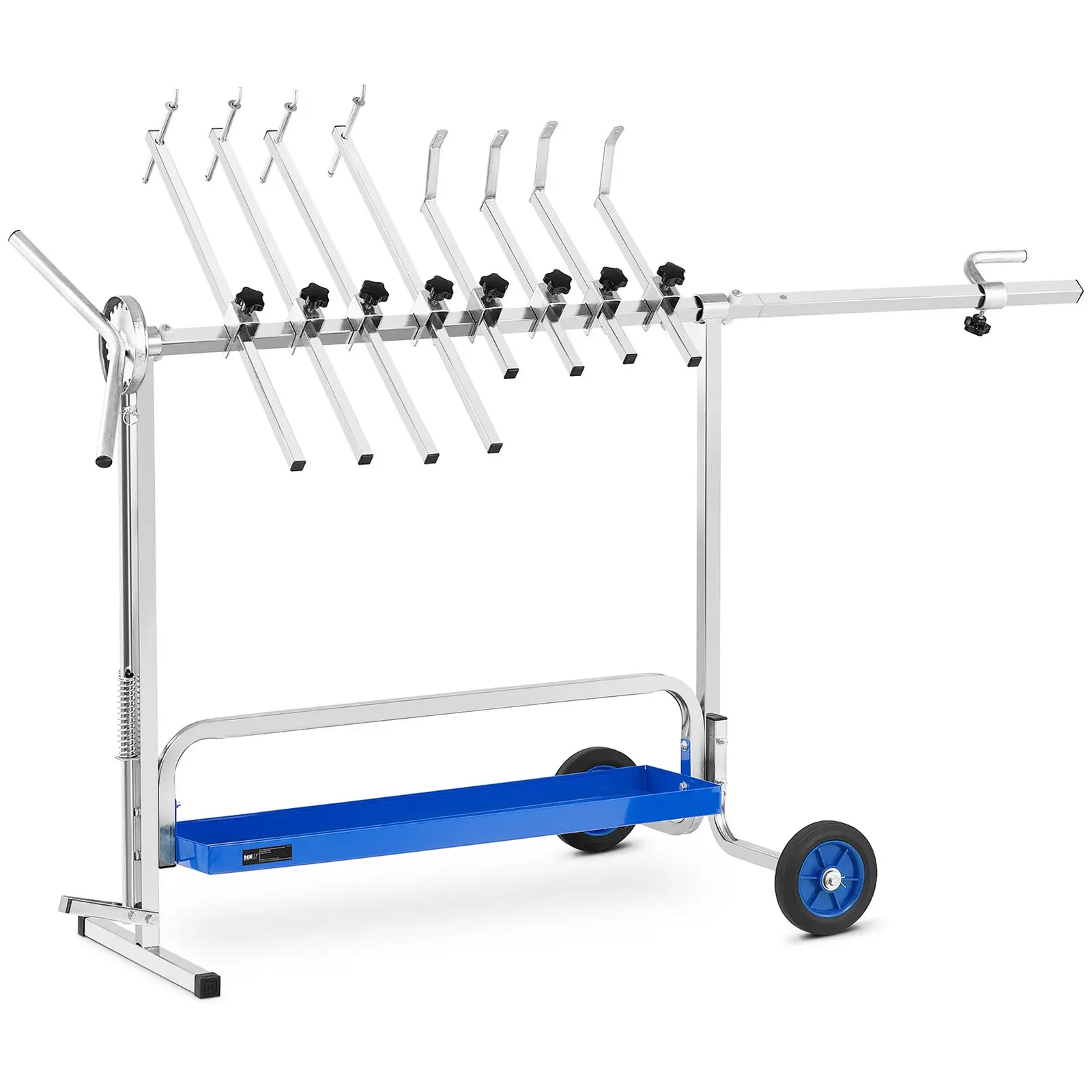 Kääntyvä maalausteline sopii mainiosti konepellin, spoilerin, takaluukun, lokasuojan, puskurin ja pienten osien maalaamiseen. Kahdeksan säädettävää kiinnityslaitetta tarjoavat optimaalisen tuen ja suojaavat naarmuilta. Näiden leveyttä, korkeutta ja kaltevuutta voidaan säätää monin tavoin. Elementit voidaan kääntää ja tuoda haluttuihin asentoihin poljinohjatulla pyöritysmekanismilla. Olitpa sitten harrastaja tai ammattilainen, MSW:n autotyökalut ja maalaustarvikkeet rikastuttavat jokaista työpajaa. Pyörivä maalausteline on valmistettu korkealaatuisesta teräksestä ja on rakenteeltaan erittäin vankka. Suorassa kulmassa taivutettavien pidikkeiden koukut kiinnittävät maalattavat osat tukevasti telineeseen. Kiinnitysvarret ovat eri pituisia ja ne voidaan säätää toisistaan riippumatta. Tämä tekee maalaustelineestä erittäin joustavan ja kompaktin. Lukittavaa kääntömekanismia voidaan käyttää helposti jalkavivulla. Jalkapolkimen jouset erottuvat edukseen pitkäikäisyydellään ja säilyttävät ominaisuutensa vuosien ajan. Laadukkaan hammaspyörän ansiosta telineeseen kiinnitetyt työkappaleet lukittuvat haluttuun asentoon varmasti. Yksittäisten hampaiden leveys on suunniteltu täydellisesti yhteensopivaksi putken halkaisijan kanssa. Kahden suuren pyörän ansiosta kääntyvää maalaustelinettä voidaan liikutella ongelmattomasti myös silloin, kun siihen on ripustettu maalattavia osia. Kumirenkaat mahdollistavat telineen siirtämisen erilaisilla pinnoilla aiheuttamatta naarmuja tai muita vaurioita lattiaan. Telineen säilytystaso on kätevä työkaluille ja muille lähellä säilytettäville tarvikkeille. Yksittäisten osien kokoaminen on erittäin helppoa ja nopeaa.