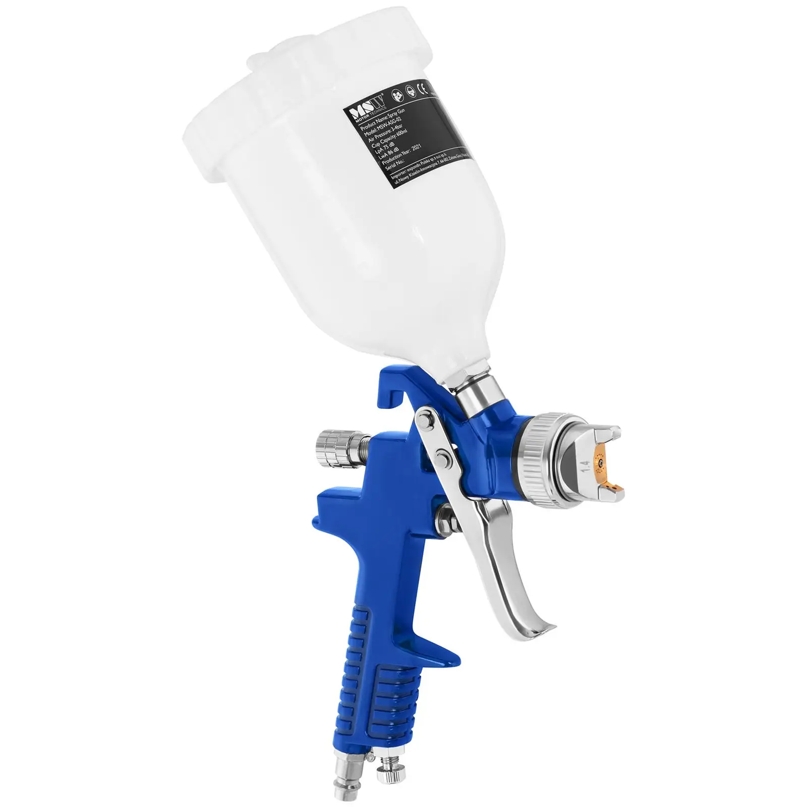 Haluatko tasaisen maalikerroksen sileille tai rakenteellisille pinnoille? Ammattilaitteiden ja korkealaatuisten työkalujen asiantuntijan, MSW:n maaliruiskulla MSW-ASG-02 se ei tuota ongelmaa. maaliruisku toimii ilman sähköä ja on siksi erityisen ekologinen. Sinun tarvitsee vain kytkeä se ilmakompressoriin (ei sisälly toimitukseen) ja aloittaa työskentely – ammattitaitoisissa korjaamoissa tai kunnianhimoisissa tee-se-itse-projekteissa. Maalipistoolilla maalit, lakat ja laseerausaineet voidaan levittää tehokkaasti 3 baarin käyttöpaineella ja 170-312 l/min ilmamäärällä. HVLP -teknologia tuottaa suuren ilmamäärän alhaisessa paineessa takaen aina hienon suihkun, mikä mahdollistaa tarkat tulokset ja tasaisen maalin levityksen. Tulos on mitä tarkempi ja yhtenäisempi yksilöllisesti, värin ja materiaalin mukaan säädettävien ilman ja äänenvoimakkuuden ansiosta. Jopa pään yläpuolella suoritetut työt ovat helposti toteutettavissa ammattimaisella ruiskutuspistoolilla. Pienen painonsa ja ergonomisen muotoilunsa ansiosta maaliruiskua voidaan käyttää vaivattomasti ja pitkään ilman, että käsi väsyy. Mukava ja helppokäyttöinen kahva takaa vaivattoman työskentelyn; 600 ml kuppi on riittävän suuri maalaamaan suuret alueet keskeytyksettä. Maaliruisku tekee vaikutuksen painevaletusta alumiinista valmistetun rungon, kromipinnoitteen ja keskimääräistä pidemmän käyttöiän ansiosta.
