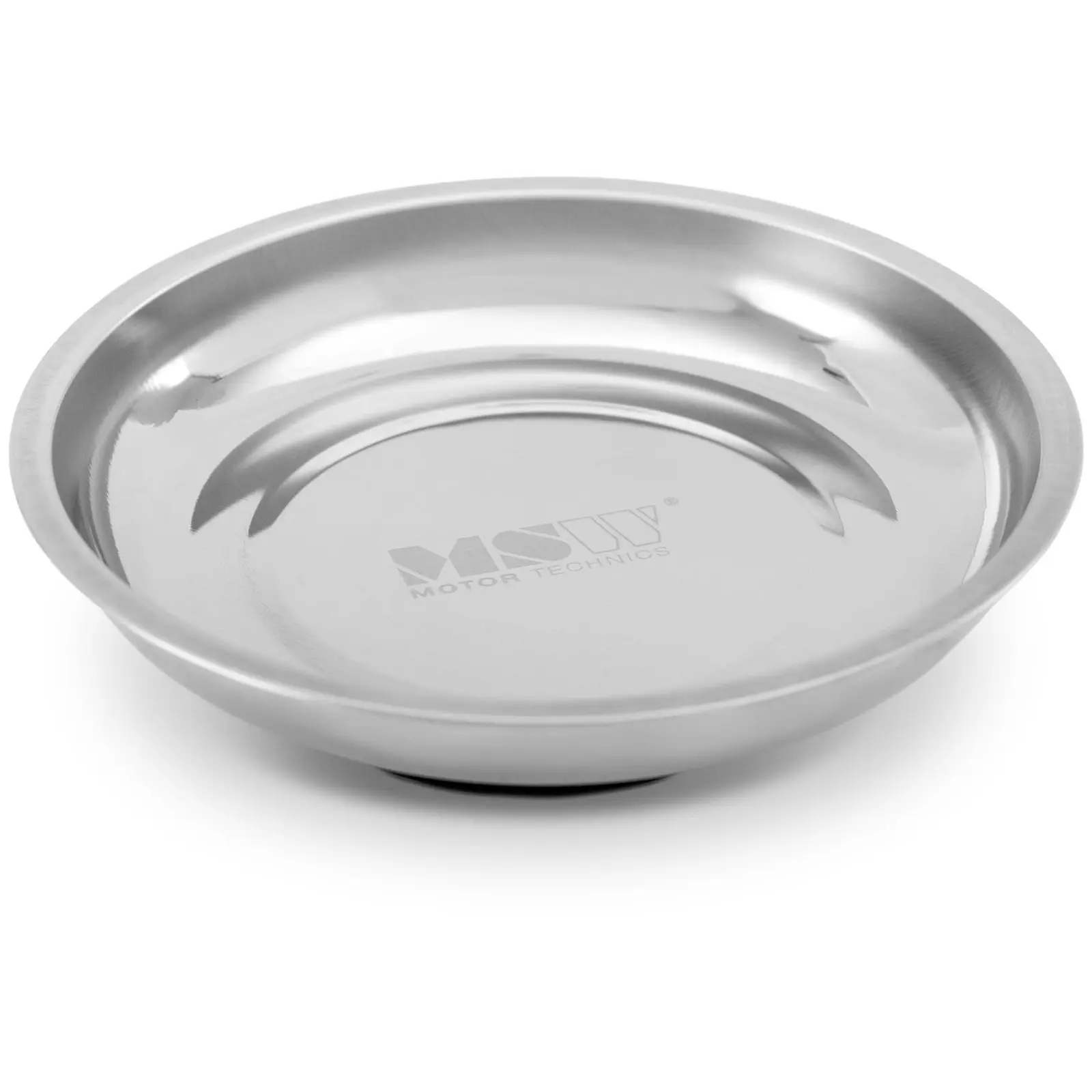 Jos ruuvit, mutterit ja muut pienet osat katoavat yhtäkkiä kokoamisen aikana, se on erittäin ärsyttävää. MSW:n magneettitarjottimen avulla voit aina pitää materiaalisi silmällä. Olipa sitten työpajassa tai varastossa – ruostumaton teräskuori tekee parhaan työn puolestasi. Magneettisen levyn halkaisija on 15 cm ja syvyys 3,6 cm. Käytännöllinen apulainen voi siis pitää sisällään lukuisia pieniä esineitä, joita tarvitset laitteita purkaessasi. Erityisen vahva ferriittimagneetti pitää itse kulhon ja pienet osat turvallisesti yhdessä. Kumimainen alapuoli varmistaa, että ruuvin kuori kiinnittyy tukevasti myös metallipintoihin.