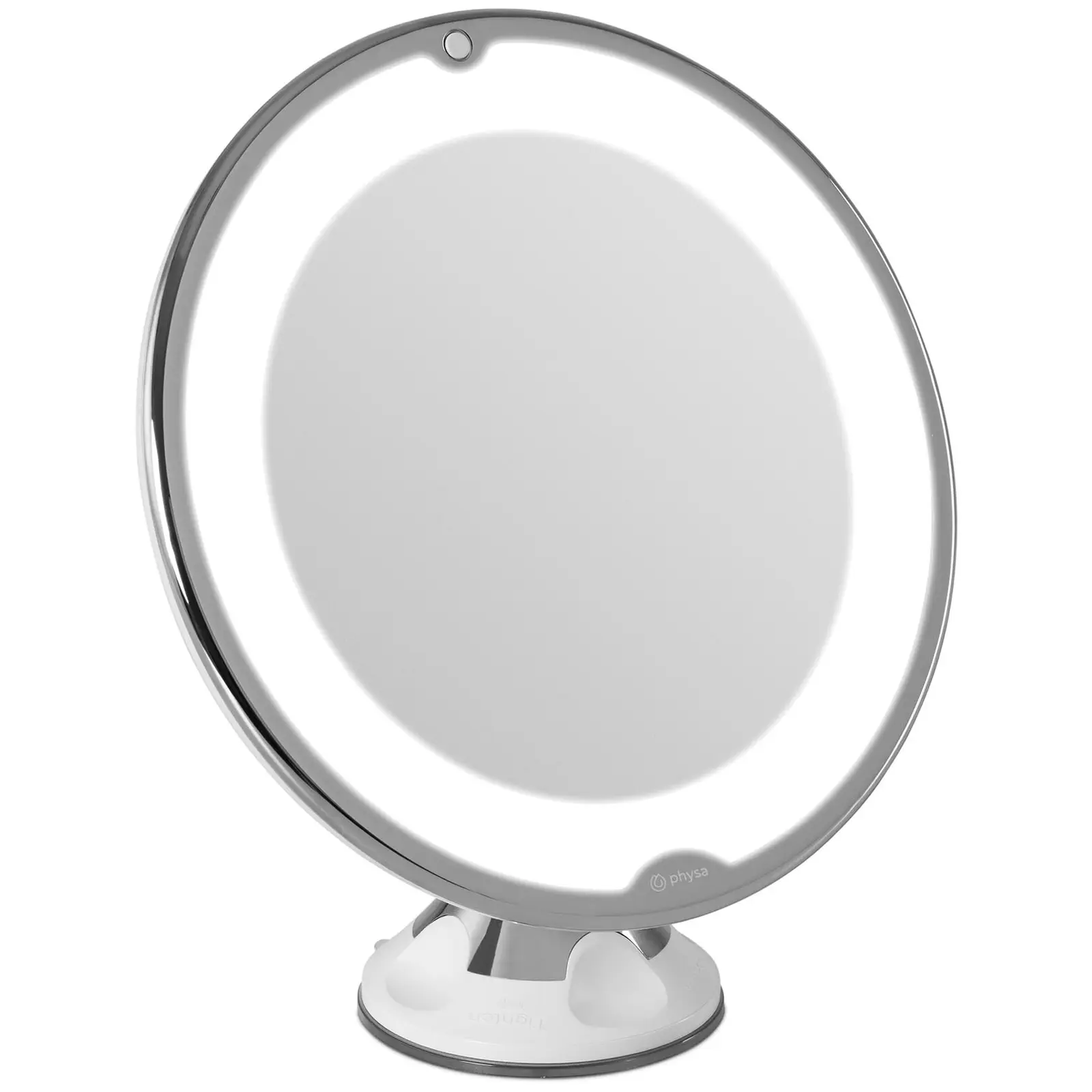 Asiakkaasi näyttävät aina lumoavalta tässä physan kosmetiikkavalikoiman kätevässä PHY-CM- 7 meikkipeilissä. Joko kauneushoitolassa, kampaamossa,takahuoneessa tai kotona makuuhuoneessa: kulmikas valaistu meikkipeili varmistaa parhaan valaistuksen meikkien, kampausten ja asukokonaisuuksia luomiseen. 10 LED-lamppua on integroitu meikkipeilin valkoiseen kehykseen. Peilipinnan ympärille renkaaseen kiinnitetyt LEDit, joiden halkaisija on 15 cm, varmistavat, että kasvosi valaistaan tasaisesti. 6400 K:n valoväri pääsee hyvin lähelle auringonsäteiden värilämpötilaa, joten saat luonnollisen vaikutelman meikkiesi tai kampaustesi tekemiseen. Valaisimia käytetään intuitiivisella kytkimellä. 10-kertaisen suurennuksen ansiosta pieni pyöreä lisäpeili näyttää jokaisen silmäripsen, jokaisen viiksikarvan ja jokaisen rypyn, ja on siksi myös ihanteellinen avustaja piilolinssien laittamisessa. Tämä tekee valaistusta meikkauspeilistä välttämättömän tarvikkeen kylpyhuoneeseen, etenkin vanhemmille ja huonosti näkeville henkilöille, kuten kaukonäköisille. Pysäköintipeiliä voidaan kääntää 360 ° kiinni tukevan alustan kuulanivelen ansiosta. Alustassa on vahva imukuppi kiinnitettäväksi sileisiin ja puhtaisiin materiaaleihin, kuten peileihin, keramiikkaan tai marmoriin. Yksinkertainen käännös oikealle imee pohjan pintaan ja vasemmalle kääntyminen vapauttaa imukupin. Pallonivel on niin vakaa, että peili pysähtyy valittuun kulmaan. Pienen koon takia voit kuljettaa meikkipeiliä helposti asiakkaille, tapahtumiin tai matkoille.