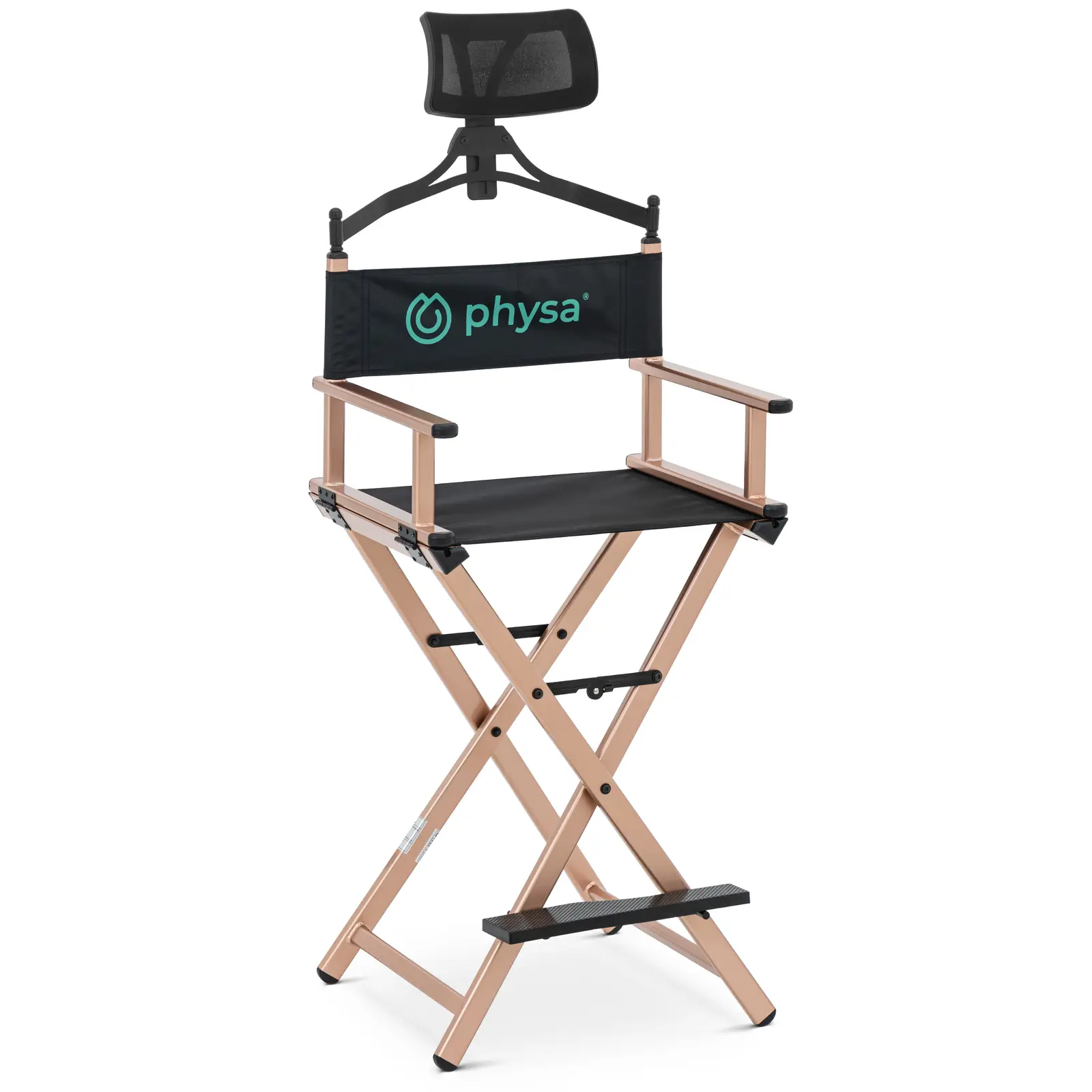 Optimaalinen työympäristö on ratkaisevan tärkeä tekijä ammattimaisen meikin aikaansaamiseksi. 75 cm:n istuinkorkeuden ansiosta tämä meikkituoli tuoli tarjoaa käyttöösi ihanteelliset olosuhteet kauneushoitoloissa, valokuvaus- ja elokuvastudioissa tai teattereissa työskentelyyn. Kokoontaitettava meikki- ja maskeeraustuoli on kevyen alumiinirunkonsa ansiosta erinomainen valinta myös messuille tai muuhun liikkuvaan käyttöön. Yksi meikkituolin kohokohdista on ehdottomasti sen mukavuus. Tuolissa istuminen on rentouttavaa, sillä siinä on korkeussäädettävä pää- ja jalkatuki, jotka lievittävät painetta. Näin varmistat, että asiakkaasi tuntevat olonsa mukavaksi koko meikkausprosessin ajan. Myös suurikokoinen istuin (40 x 47 cm) tekee tuolista mukavan apuvälineen. Toinen meikkaustuolin avaintekijöistä on sen vakaus. Tuolin alumiinirunko sekä istuin- ja selkänoja on valmistettu nailonista, ja sen tukeva rakenne tarjoaa suuren kokonaiskantavuuden. Näin voit olla varma, että tuoli kestää helposti kaikki ammattikäytön vaatimukset. Likaa hylkivien materiaalien ansiosta voit myös puhdistaa tuolin hetkessä. Laadukas meikkituoli onkin täydellinen valinta kaikille, jotka arvostavat työssään laatua, mukavuutta, ammattimaisuutta, liikkuvuutta ja kestävyyttä. Investoi menestykseesi – investoi markkinoiden parhaaseen meikkituoliin.