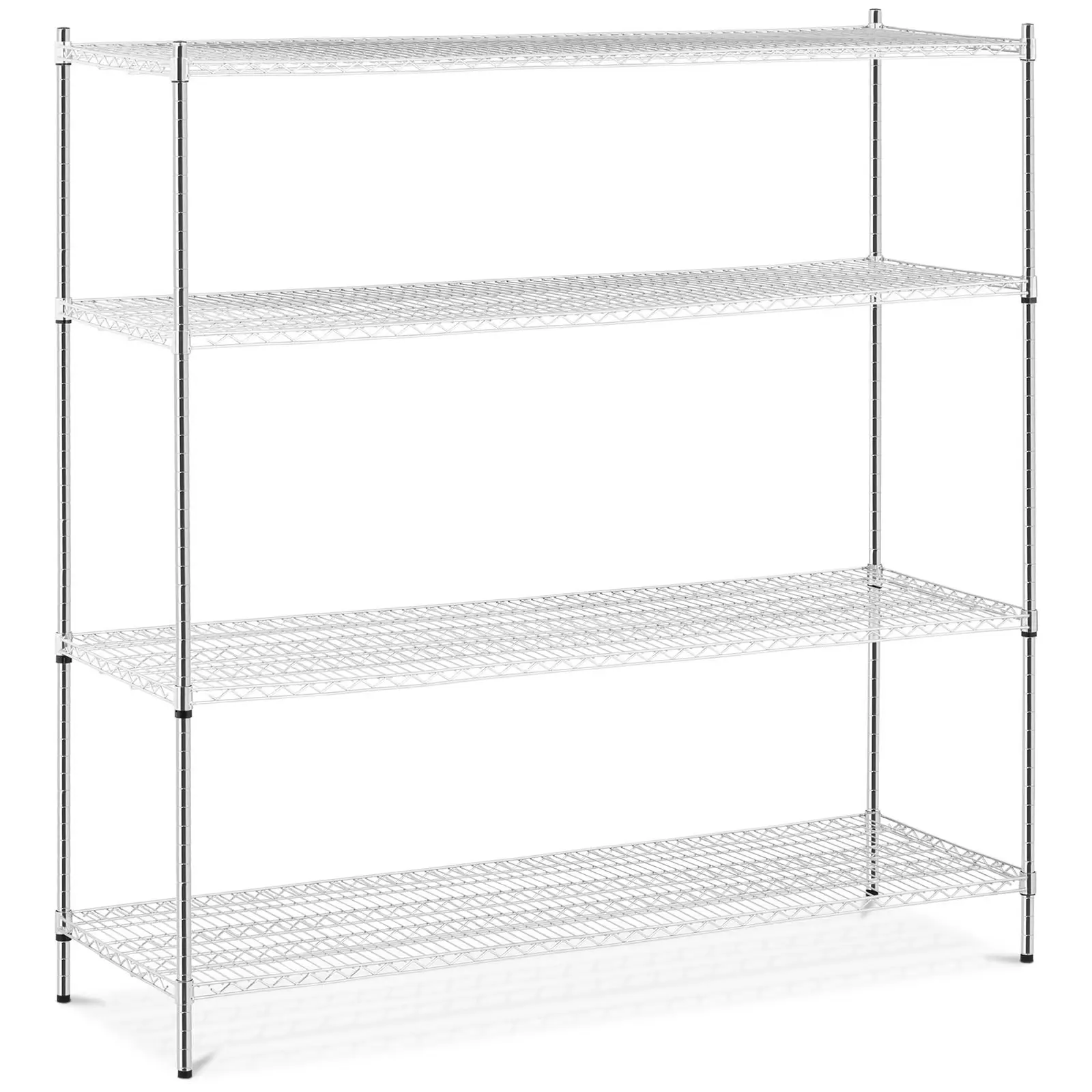 Royal Cateringin metallihylly RCMR- 1800P36 on suunniteltu kaupalliseen, teolliseen tai yksityiseen käyttöön. Hylly tarjoaa paitsi valtavan määrän säilytystilaa ja tukevan jalustan, niin se myös vakuuttaa erityisen pitkällä käyttöiällään. Tilavassa teräshyllyssä on neljä 180 x 60 cm teräsristikkohyllytasoa muovialustoilla, mikä takaa runsaan säilytystilan: seisoopa se sitten hotellissa, työpajassa, ravintolassa tai supermarketissa, kotona autotallissa, keittiössä tai kellarissa. Kullakin tasolla voidaan säilyttää enintään 250 kg, joten hyllyn kokonaiskuormitus on enintään 1. 000 kg. Kuormitettavan hyllyn avoin muotoilu tarkoittaa, että hyllyyn asetettuihin tavaroihin pääsee helposti käsiksi kaikilta puolilta. Hyllyn kokoamiseen et tarvitse työkaluja ja siihen kuluu vain muutama minuutti, koska yksittäiset osat on vain kiinnitettävä ja lukittava paikoilleen. 25 mm paksuisten pylväiden ansiosta tämä hylly on vähintään yhtä vakaa kuin tavanomaisilla ruuviliitoksilla varustetutkin rakenteet. Neljän säädettävän tasoitusjalan ansiosta lattian epätasaisuudet voidaan tasoittaa ja hylly seisoo aina suorassa. Metallihylly näyttää paitsi erittäin tyylikkäältä ja koristeelliselta, pinnoitetun hiiliteräksen ansiosta myös erittäin kestävältä, vankalta ja helppohoitoiselta. Käytä joka millimetri säilytystilaa hyväksesi tämän käytännöllisen ja kestävän hyllyn avulla!