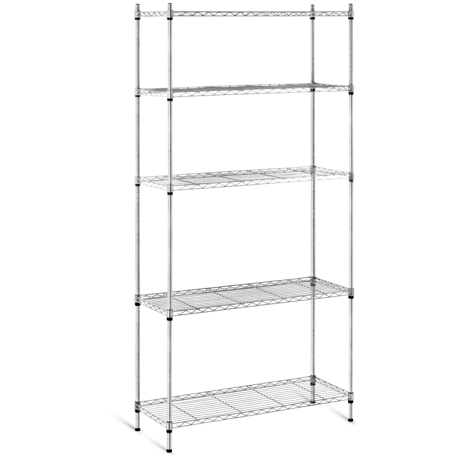 Tarvitsetko tilaa astioille, kipoille, kattiloille, laitteille, leluille, kirjoille tai elintarvikkeille? Tällöin tämä erityisesti ammattimaiseen käyttöön suunniteltu metallihylly RCMR-1800P19C on sinulle juuri oikea valinta. Hyllyssä on säilytystilaa erilaisille tarvikkeille ja se parantaa jokaista oleskelu- ja säilytystilaa. Se vakuuttaa lujatekoisuudellaan, kätevällä muotoilullaan sekä monipuolisuudellaan. Tästä hyllystä saat halutessasi jopa kaksi pienempää hyllyä. Kaikkea mitä ravintolatarvikkeisiisi tarvitset löydät Royal Cateringin valikoimasta. Säilytä keittiötarvikkeita, -laitteita, elintarvikkeita tai mausteita asianmukaisesti hyllyssä. Viisi, mitoiltaan 35 x 90 cm olevaa säilytystasoa tarjoavat paljon säilytystilaa. Jokainen taso kestää 30 kg, joten koko hylly kantaa yhteensä jopa 150 kg. Tasot ovat lisäksi korkeudesta säädettäviä ja täten hylly on optimaalisesti mukautettavissa yksilöllisesti jokaiseen käyttötarkoitukseen. Lisäksi hyllyyn on mahdollista kiinnittää kolme tai neljä säilytystasoa. Hylly voidaan erottaa jopa kahdeksi pienemmäksi hyllyksi. Avoimen rakenteen ansiosta säilytettävät tavarat ovat otettavissa hyllystä tai asetettavissa hyllyyn vaivattomasti aina tarpeen mukaan. Metallihylly erottuu edukseen vankkuudellaan. Tämän avohyllyn tukevuuden lisäksi myös siinä olevat ruuviliitokset ovat erittäin vankat ja kantavuudeltaan muita hyllyn osia jopa parempia. Runko koostuu neljästä, 180 cm korkeasta tangosta. Säädettävien jalkojensa ansiosta hylly seisoo suorassa ja tukevasti myös kaltevilla lattioilla. Hylly on valmistettu metallista ja päällystetty pitkäikäisellä ja kestävällä mustalla epoksiharsilla. Päällyste erottuu edukseen suojaavilla ominaisuuksillaan sekä kuivissa että kosteissa olosuhteissa. Materiaali ei reagoi elintarvikkeiden kanssa ja on korroosion kestävä eikä lika pinty siihen helposti. Sileät, hienohuokoiset pinnat on helppo puhdistaa ja desinfioida. Avohylly on nopeasti koottavissa yksittäisistä osistaan kokonaiseksi hyllyksi. Toimituksen sisältöön kuuluvat kiinnitysosat tekevät hyllyn kokoamisesta helppoa. Säilytystasot kiinnitetään kulmistaan kiinni hyllykehikkoon. Täten hylly on erittäin kantava ilman seinäkiinnitystäkin.