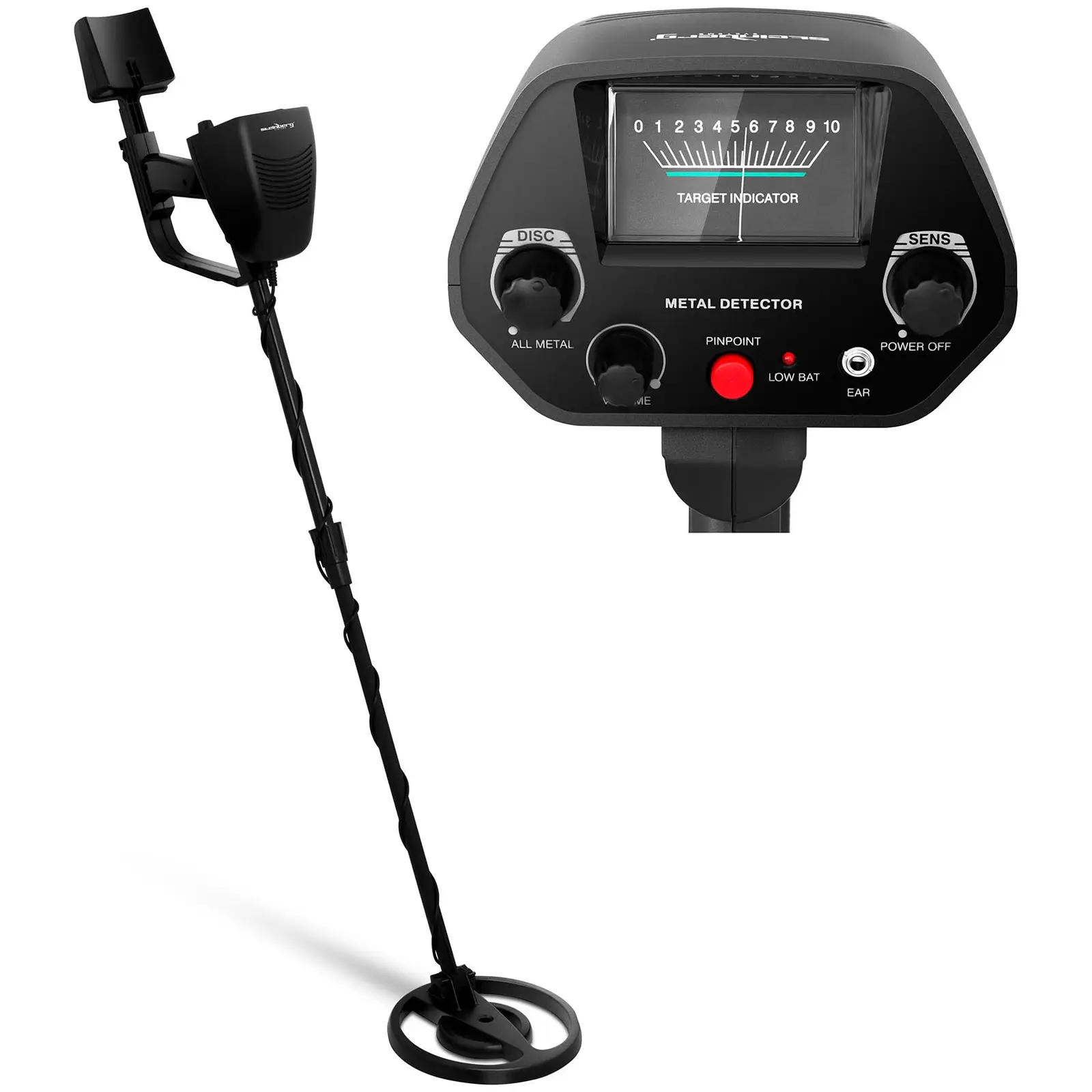 Aarteenetsintä on jännittävä harrastus, joka kannattaa jos onnea ja kärsivällisyyttä riittää. Tärkeintä etsinnässä on tietysti metallinpaljastin. Lähde etsimään koruja, kultaa, hopeaa, vanhoja esineitä tai muita magneettisia tai paramagneettisia metallisia osia. Ohjauspaneelista voit asettaa eri parametrit. Metallinpaljastimessa SBS-MD-1 on muun muassa kaksi eri etsimismenetelmää. Se on ihanteellinen etsintälaite rannalla, vanhoissa linnoissa, muinaisilla taistelukentillä, metsissä, pelloilla sekä kentillä. Lisäksi tämä laite soveltuu seinissä, katossa tai lattialla olevien johtojen paikantamiseen ja jopa vesijohtojen tarkka paikantaminen on mahdollista. Steinbergin metallinpaljastin SBS-MD-1 voi paikantaa jopa 200 cm syvyydessä olevia suuria objekteja, pienemmät kappaleet, kuten kolikot voidaan paikantaa tarkasti 25 cm syvyydestä. Valitse kahdesta etsimismenetelmästä. Menetelmä ALL METAL tunnistaa suurimman osan metalleista, siinä on automaattinen maahäiriön poisto ja se on erittäin herkkä. DISC-menetelmällä voit estää paljastinta hälyttämästä kaikkien metallien kohdalla ja käyttää sitä tiettyjen metallien etsimiseen. MOVE-toiminto mahdollistaa karkean, liikkeessä tapahtuvan etsinnän. PINPOINT-toiminto helpottaa paikallistamaan löydetyn kohteen tarkasti. Metallinpaljastimen rakenne mahdollistaa sen, että myös pitkäkestoinen aarteenetsintä sujuu täydellisesti ja vaivatta. Metallinpaljastimessa on 75,5 – 105 cm pituinen teleskooppivarsi, jottei sinun tarvitse kyyristellä etsiessä. Ergonominen rakenne sisältää mukavan pehmustetun käsituen sekä teleskooppivarren ja se on kevyt, joten se on sopiva työkalu jokaiselle iästä riippumatta. Huono ilma, kuten sade tai lumi ei estä etsimistä tällä metallinpaljastimella. Sen hakukela on nimittäin vedenkestävä. Kaatosateessa käytön lisäksi paljastimella on mahdollista etsiä aarteita myös matalissa vesistöissä. Kuulokeliitännän ansiosta metallinpaljastinta voi käyttää äänettömästi ja siihen sopivat 3,5 mm liittimen omaavat kuulokkeet. Uusimman teknologian ansiosta laite kuluttaa erittäin vähän virtaa. Metallinpaljastin toimii ainoastaan kahdella 9 V-paristolla. Kuulokkeet ja paristot eivät kuulu toimituksen sisältöön.