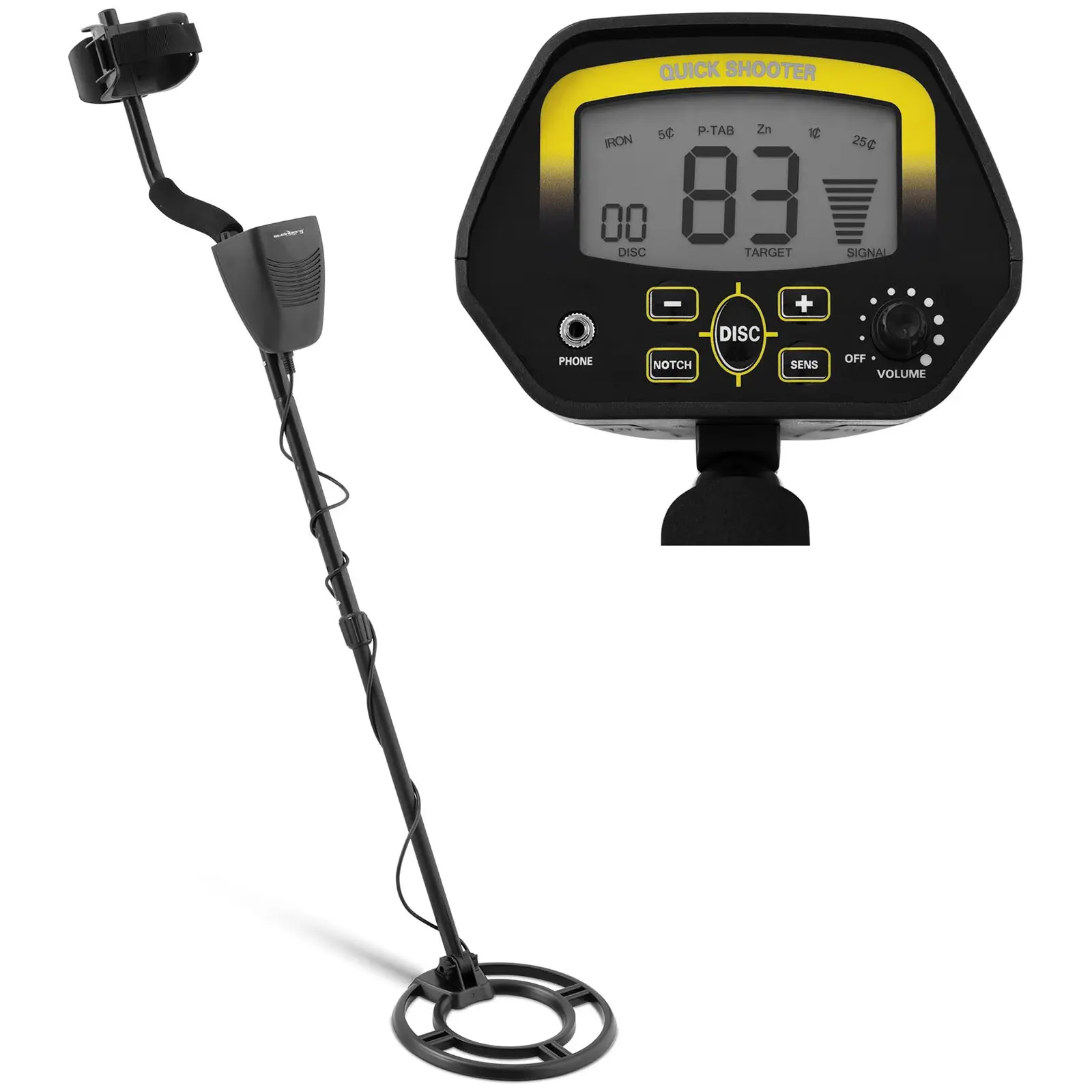 Etsivä löytää! Etsitpä sitten kadonnutta vihkisormusta puutarhasta, kulta-aarretta metsästä, ammuksia vanhoilta taistelukentiltä tai johtoja seinästä – Steinberg Systemsin metallinpaljastin- SBS-MD-24 löytää kyllä kaiken etsimäsi. Intuitiivisella ohjauspaneelilla ja LCD-näytöllä varustettu metallinpaljastin paikantaa pienetkin esineet, kuten kolikot, sormukset tai naulat, jos ne on haudattu maahan enintään 20 cm syvyyteen. Ilmaisimessa on kolme eri tilaa: All metal -tilassa laite tunnistaa kaikenlaiset metallit, siinä on automaattinen maadoituskompensointi ja sen herkkyys on korkea. DISC-tilassa voit estää paljastinta hälyttämästä kaikkien metallien kohdalla ja käyttää vain sitä tiettyjen metallien etsimiseen. Notch-tilassa voidaan valita taajuusalueita tietyille metalleille. Laitteessa on kuulokeliitäntä, jonka avulla voit käyttää kuulokkeita vaimentaaksesi taustamelun, estääksesi muita häiriintymästä paljastimen äänistä tai pitääksesi tiedon arvokkaasta löydöstäsi ihan vain itselläsi. Voit liittää mitkä tahansa 3,5 mm liittimen omaavat kuulokkeet. Äänenvoimakkuutta voidaan säätää vastaavalla säätimellä. Uusimman teknologian ansiosta laite kuluttaa erittäin vähän virtaa. Metallinpaljastin toimii kahdella 9 V paristolla ja sitä voidaan käyttää missä tahansa alhaisen painonsa ansiosta. Viimeisenä, mutta ei vähäisimpänä: teleskooppivarren pituutta voidaan säätää 106 – 122 cm, jotta kenenkään ei tarvitse kyyristellä etsiessä. Ergonomisen metallinilmaisimen pehmustettu käsinoja takaa maksimaalisen tehokkaan ja mukavan etsinnän. Huono ilma, kuten sade tai lumi ei estä etsimistä tällä metallinpaljastimella. Sen halkaisijaltaan 25 cm hakukela on nimittäin vedenkestävä. Voit siis jatkaa etsintöjäsi niin sateessa kuin matalissa vesistöissäkin.