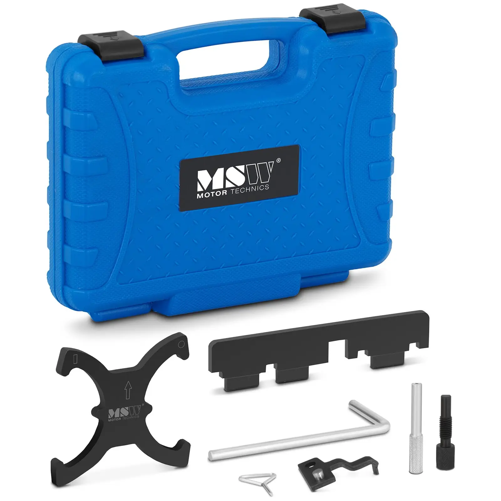 Haluatko säätää moottoria Ford Focus tai C-MAX-mallien hammashihnaa vaihtaessa? Se ei ole ongelma MSW:n, korkealaatuisten autotyökalujen asiantuntijan MSW-ETT-13 -moottorin ajoitustyökalulla. Ajoitustyökalu on suunniteltu optimaalisesti 1,6 Ti-VCT ja 2. 0 TDCi -moottoreihin, ja sitä voidaan käyttää myös muihin töihin. Nokka-akselin säätötyökalulla voit suorittaa monimutkaisiakin töitä näihin molempiin moottorityyppeihin: 1,6 Ti-VCT ja 2,0 TDCi. Tämä ammattikäyttöinen työkalu on suunniteltu sopimaan optimaalisesti vastaaviin moottorinosiin ja on siksi helppokäyttöinen. Moottorin ajoitustyökalu takaa tehokkaimman tavan moottorin lukitsemiseen ja säätämiseen. Työskentely muiden kaupallisesti saatavien työkalujen kanssa voi vahingoittaa moottorinosia tai johtaa jopa käyttäjän loukkaantumiseen. Lisäksi MSW: n työkalusarja varmistaa, ettei kulumisia juuri synny. Toimitukseen sisältyviin korkealaatuisiin työkaluihin kuuluu kaksi nokka-akselin kiinnitystä ja kampiakselin kiinnitystapit sekä kampiakselin hihnapyörän säätötyökalu, nokka-akselin hallitsija ja kiinnitystappi hihnapyörän kiristämiseen. Vankasta ja kestävästä teräksestä valmistetut työkalut tarjoavat sinulle monen vuoden uskollisen palvelun, eikä niiden siksi pitäisi puuttua mistään ammattiautokorjaamosta tai kunnianhimoisesta harrastelijamekaanikon autotallista! Asiakaskäynneillä voit säilyttää kaikki osat puhtaasti ja turvallisesti tukevassa muovisessa kuljetuslaukussa, jossa jokaisella osalle on oma paikkansa. Näin sinulla on aina työkalut järjestyksessä ja kaikki on saatavilla heti, kun työkaluja tarvitaan.