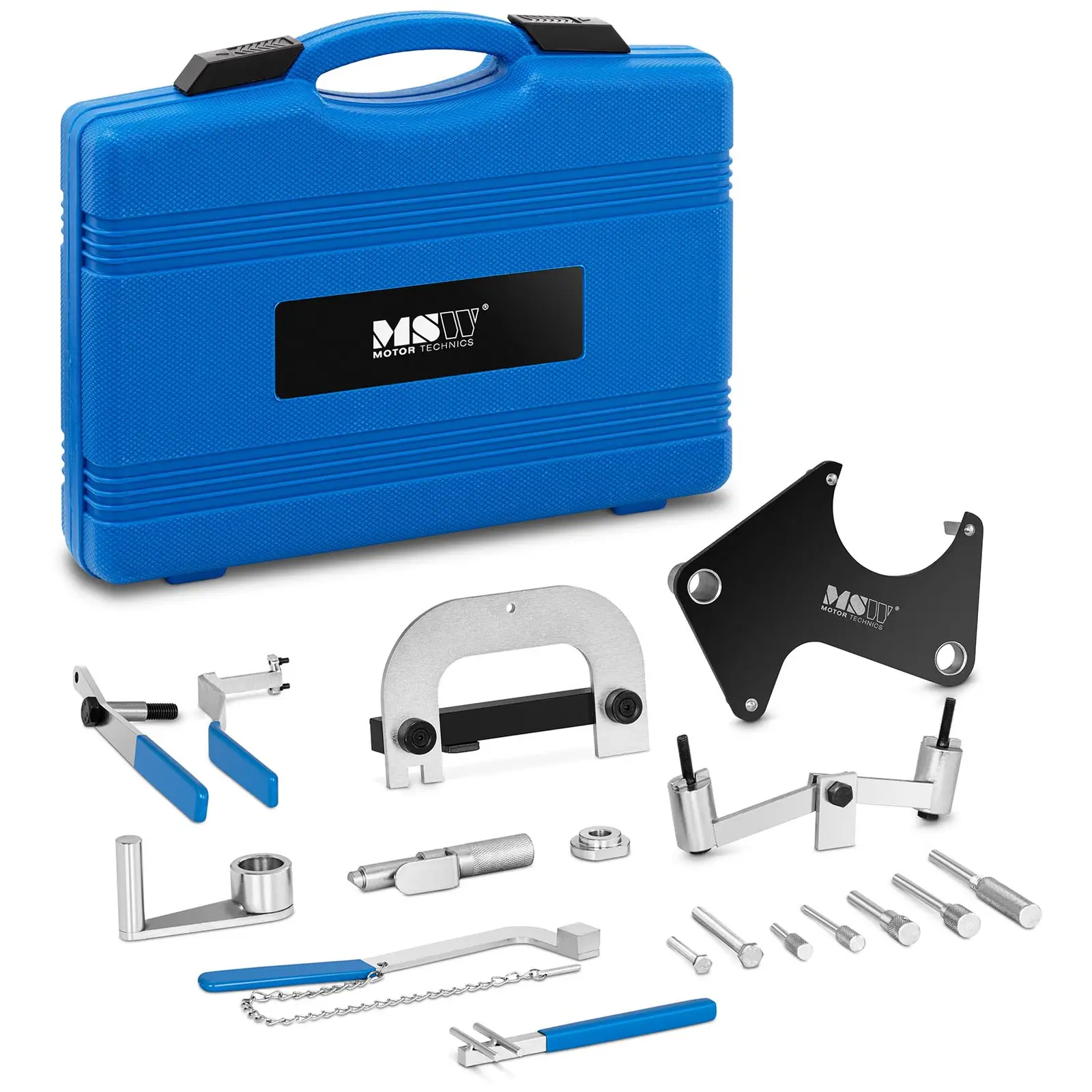 Jos haluat korjata Renault-automoottorin: MSW:n, korkealaatuisten autotyökalujen asiantuntijoiden MSW-ETT-12 moottorin säätötyökalulla onnistuu vaivatta vauhtipyörän, kampiakselin, pumpun akselin tai ruiskutuspumpun akselin lukitus, kampiakselin hihnapyörän irrottaminen tai hammashihnan kiristyskin. Nokka-akselin säätötyökalulla voit suorittaa monimutkaisia töitä eri ajoneuvomallien moottoreille: Renault Twingo 1. 2; Clio 1. 2/1. 4; 1. 4 16V/1. 6 16V/1. 8 16V; Sport 2. 0 16V; Williams 2. 0 16V; R19 1. 4/1. 4 ECO/1. 8 16V; Megane 1. 4 16V/1. 6 16V/2. 0 16V; Scenic 1. 4 16V/1. 6 16V/2. 0 16V; Espace 2. 0/2. 0 16V/2. 2 TD; Express/Extra 1. 4; Rapid 1. 4; Kangoo 1. 2/1. 4; Laguna 1. 8/2. 0; 1. 6 16V/1. 8 16V/2. 0 16V; 2. 2 D/TD; 2. 5 D/TD; Safrane 2. 0 16V/2. 2 TD/2. 5 20V; Trafic/Opel Arena 2. 5; Master 2. 5 D/TD; Opel Movano 1. 9/2. 5/2. 8 Diesel; Volvo 440/460/480; Volvo S40/V40 1995-04 1. 9 Diesel. Tämä ammattikäyttöinen työkalu sovitetaan optimaalisesti sopivaksi vastaaviin moottorinosiin ja on siksi helppokäyttöinen. Moottorin ajoitustyökalu takaa tehokkaimman tavan lukita ja säätää moottoria. Työskentely muiden kaupallisesti saatavien työkalujen kanssa voi vahingoittaa moottorinosia tai jopa käyttäjää. Lisäksi MSW:n työkalusarja varmistaa, ettei kulumisia juuri synny. Vankasta ja kestävästä teräksestä valmistetut työkalut tarjoavat sinulle monen vuoden uskollisen palvelun, eikä niiden siksi pitäisi puuttua mistään ammattiautokorjaamosta tai kunnianhimoisesta harrastelijamekaanikon autotallista! Asiakaskäynneillä voit säilyttää kaikki osat puhtaasti ja turvallisesti tukevassa muovisessa kuljetuslaukussa. Näin sinulla on aina työkalut järjestyksessä ja kaikki on saatavilla heti, kun työkaluja tarvitaan.