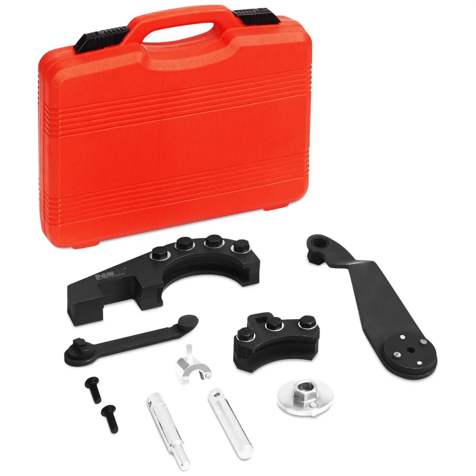 Jos haluat korjata VW:n 2. 5-TDI-moottorin: Laadukkaiden autotyökalujen asiantuntijoiden MSW:n MSW- ELVW-01- moottorin ajoitustyökalulla voit vaivatta tarkistaa ja säätää 5:n tai 10:n sylinterin ajoituksen tai lukita nokka-tai kampiakselin akselin vaihtaessasi jakohihnan. Nokka-akselin säätötyökalulla voit tehdä jopa monimutkaisia töitä VW pikkubussi, Touareg tai Multivan- automalleissa. Tämä ammattikäyttöinen työkalu on suunniteltu sopimaan optimaalisesti AXD, AXE, BAC, BLJ, BLK, BNZ, BPC, BPD ja BPE -koodin sisältäviin moottorinosiin ja on siksi helppokäyttöinen. Moottorin ajoitustyökalu takaa tehokkaimman tavan moottorin lukitsemiseen ja säätämiseen. Työskentely muiden kaupallisesti saatavien työkalujen kanssa voi vahingoittaa moottorinosia tai johtaa jopa käyttäjän loukkaantumiseen. Lisäksi MSW:n työkalusarja varmistaa, ettei kulumisia juuri synny. Toimitukseen sisältyviin korkealaatuisiin työkaluihin kuuluvat nokka-akselin lukko, kaksi kiristystyökalua ja kiinnityslaite nokka-akselille, kaksi kiinnitintä kampiakselille ja erityisavain kampiakselin kääntöön. Vankasta ja kestävästä teräksestä valmistetut työkalut tarjoavat sinulle monen vuoden uskollisen palvelun, eikä niiden siksi pitäisi puuttua mistään ammattiautokorjaamosta tai kunnianhimoisesta harrastelijamekaanikon autotallista! Asiakaskäynneillä voit säilyttää kaikki osat puhtaasti ja turvallisesti tukevassa muovisessa kuljetuslaukussa, jossa jokaisella osalle on oma paikkansa. Näin sinulla on aina työkalut järjestyksessä ja kaikki on saatavilla heti, kun työkaluja tarvitaan.