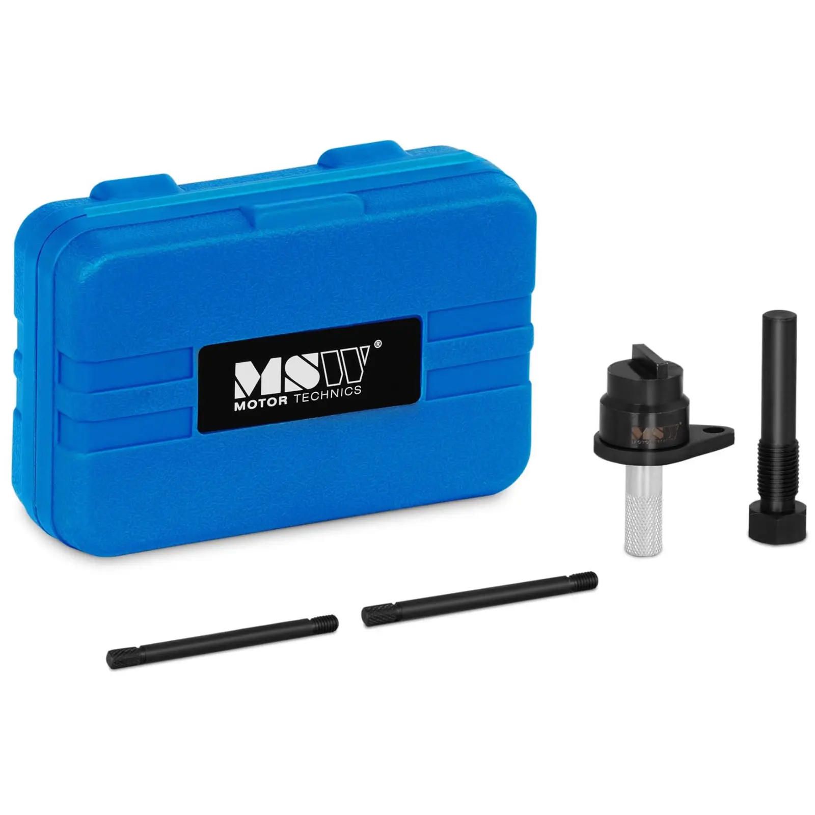 Jos haluat korjata Audin, Seat:n, Skodan tai VW:n 1. 2 TSI: n, 1. 2 TFSI: n, 1. 4 FSI: n tai 1. 6 FSI-moottorin niin MSW: n MSW- ETT-19- moottorin ajoitustyökalulla voit lukita nokka-akselin tai kampiakselin hetkessä ohjausketjun vaihtoa varten, voit kiinnittää tai irrottaa nokka-akselin tai suorittaa muita säätöjä vaivatta. Nokka-akselin säätötyökalulla voit suorittaa monimutkaisiakin töitä eri ajoneuvomalleissa, joissa on VAG 1. 2 TFSI-moottori. Tämä ammattikäyttöinen työkalu on suunniteltu sopimaan optimaalisesti vastaaviin moottorinosiin ja on siksi helppokäyttöinen. Moottorin ajoitustyökalu takaa tehokkaimman tavan moottorin lukitsemiseen ja säätämiseen. Työskentely muiden kaupallisesti saatavien työkalujen kanssa voi vahingoittaa moottorinosia tai jopa käyttäjää. Lisäksi MSW: n työkalusarja varmistaa, ettei kulumisia juuri synny. Toimitukseen sisältyviin korkealaatuisiin työkaluihin kuuluu kampiakselin lukitusruuvi, nokka-akselin kiinnityslaite ja kaksi ohjauspulttia kompressorin kiinnittämiseen. Vankasta ja kestävästä teräksestä valmistetut työkalut tarjoavat sinulle monen vuoden uskollisen palvelun, eikä niiden siksi pitäisi puuttua mistään ammattiautokorjaamosta tai kunnianhimoisesta harrastelijamekaanikon autotallista! Asiakaskäynneillä voit säilyttää kaikki osat puhtaasti ja turvallisesti tukevassa muovisessa kuljetuslaukussa. Näin sinulla on aina työkalut järjestyksessä ja kaikki on saatavilla heti, kun työkaluja tarvitaan.