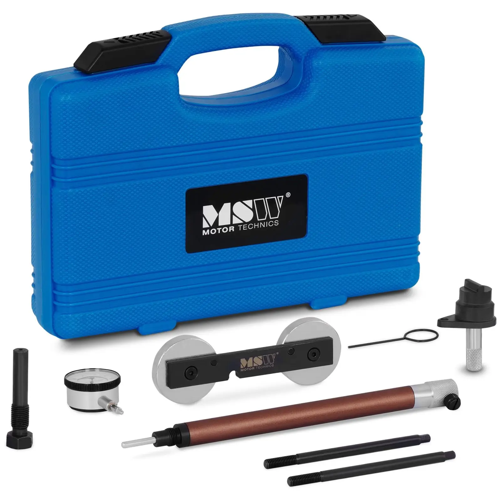 Jos haluat korjata Audista, Seatista, Skodasta tai VW:n 1. 2 TSI: n, 1. 2 TFSI: n, 1. 4 FSI: n tai 1. 6 FSI-moottorin niin MSW: n MSW- ETT-18- moottorin ajoitustyökalulla voit lukita nokka-akselin tai kampiakselin hetkessä ohjausketjun vaihtoa varten, voit kiinniittää tai irrottaa nokka-akselin tai suorittaa muita säätöjä vaivatta. Nokka-akselin säätötyökalulla voit suorittaa monimutkaisiakin töitä eri ajoneuvomalleissa, joissa on 1. 2 TSI, 1. 2 TFSI, 1. 4 FSI tai 1. 6 FSI -moottori. Tämä ammattikäyttöinen työkalu on suunniteltu sopimaan optimaalisesti vastaaviin moottorinosiin ja on siksi helppokäyttöinen. Moottorin ajoitustyökalu takaa tehokkaimman tavan moottorin lukitsemiseen ja säätämiseen. Työskentely muiden kaupallisesti saatavien työkalujen kanssa voi vahingoittaa moottorinosia tai jopa käyttäjää. Lisäksi MSW: n työkalusarja varmistaa, ettei kulumisia juuri synny. Toimitukseen sisältyviin korkealaatuisiin työkaluihin kuuluvat kampiakselien ja hydraulisten kiristimien lukko, kaksi lukitusta nokka-akseleille, kaksi lukitustappia kampiakselin hammaspyörälle ja tarkka mittari pidikkeellä. Vankasta ja kestävästä teräksestä ja alumiinista valmistetut työkalut tarjoavat sinulle monen vuoden uskollisen palvelun, eikä niiden siksi pitäisi puuttua mistään ammattiautokorjaamosta tai kunnianhimoisesta harrastelijamekaanikon autotallista! Asiakaskäynneillä voit säilyttää kaikki osat puhtaasti ja turvallisesti tukevassa muovisessa kuljetuslaukussa. Näin sinulla on aina työkalut järjestyksessä ja kaikki on saatavilla heti, kun työkaluja tarvitaan.
