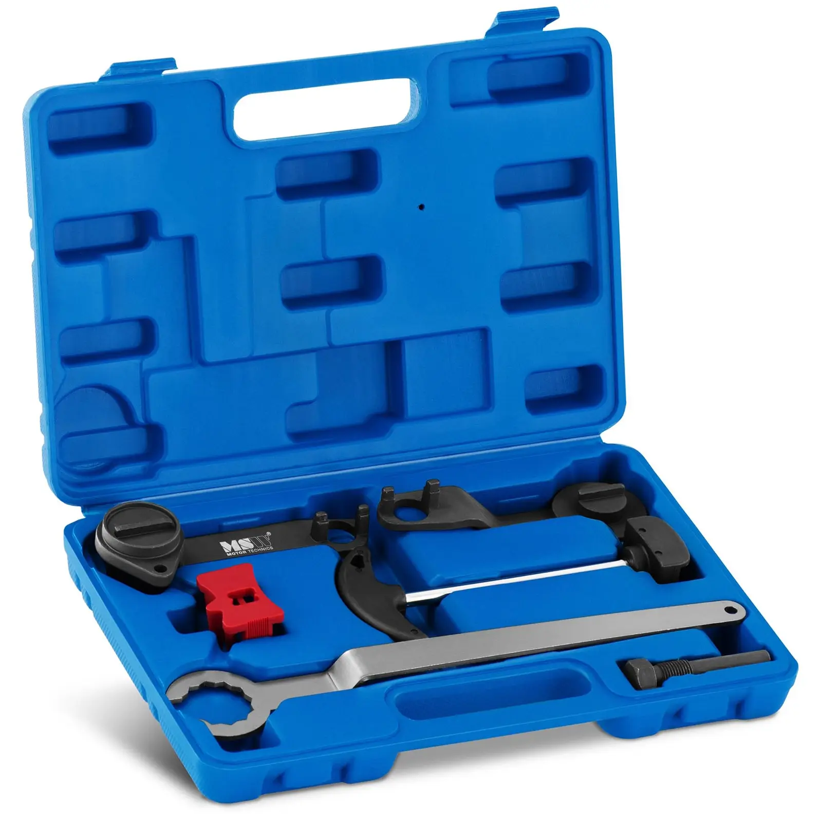 Jos haluat huoltaa VW:n, Audin, Skodan tai Seatin moottorin: korkealaatuisten autotyökalujen asiantuntijan, MSW:n moottorin ajoitustyökalulla nokka- ja kampiakselin lukitus, moottorinsäätöaikojen tarkistus ja asetus tai jakohihnan säätö tai vaihto eivät tuota ongelmaa. Nokka-akselin lukitustyökalulla voi tehdä jopa monimutkaista työtä eri automalleissa, kuten Seat Mii-, Skoda Citigo- ja VW Up-malleissa. Kiinnitä huomiota tunnistekirjaimiin CHYA, CHYB ja CPGA. Setti sopii käytettäväksi myös vuoden 2013 Audi A3:ssa, vuoden 2012 VW Golf VII:ssa, vuoden 2012 Jettassa, vuoden 2013 Skoda Octaviassa ja vuoden 2013 Seat Leonissa. Moottorikoodit tässä ovat: CJZA, CJZB, CMBA, CXSA, CHPA, CPWA, CPVA ja CRJA. Tämä ammattilaistyökalu sopii optimaalisesti vastaaviin moottorin osiin ja sitä voidaan siksi käyttää helposti. Moottorin ajoitustyökalu takaa tehokkaimman tavan moottorin lukitsemiseen ja säätämiseen. Työskentely muiden kaupallisesti saatavien työkalujen kanssa voi vahingoittaa moottorinosia tai johtaa jopa käyttäjän loukkaantumiseen. Lisäksi MSW:n työkalusarja varmistaa, ettei kulumista juurikaan tapahdu. Vankasta ja kestävästä hiiliteräksestä ja nailonista valmistetut työkalut tarjoavat sinulle monen vuoden uskollisen avun, eikä niiden siksi pitäisi puuttua yhdestäkään ammattiautokorjaamosta tai kunnianhimoisesta harrastelijamekaanikon autotallista! Asiakaskäynneillä voit säilyttää kaikki osat puhtaasti ja turvallisesti tukevassa polyeteenistä valmistetussa kuljetuslaukussa. Näin sinulla on aina työkalut järjestyksessä ja kaikki on saatavilla heti, kun työkaluja tarvitaan.