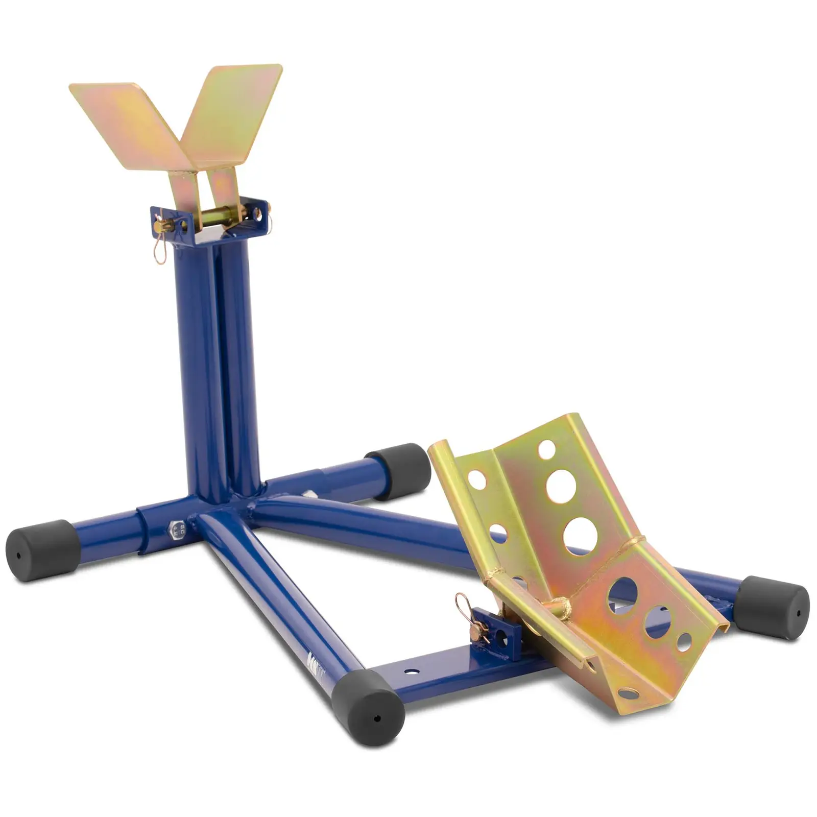Kun haluat pysäköidä, kuljettaa tai varastoida moottoripyöriä: MSW:n moottoripyörän kuljetusteline MSW-MWC-01 autotyökalujen asiantuntijoilta pitää moottoripyörät tukevasti paikallaan. Käytännöllisen taittomekanismin ansiosta moottoripyöräteline on kompakti, vakaa ja joustava. MP-tuki on yksinkertainen, tehokas ja täydellinen lisä moottoripyörälle tai moottoripyöräkorjaamoon. Laaja jalusta mahdollistaa sen käytön sekä kiinnitettynä että vapaasti seisovana. Missä sitten käytitkin tukea, sen vankka teräsrakenne pitää jopa 200 kg:n painoiset moottoripyörät turvallisesti pystyssä. Kuljetustelineen taitettava rakenne pitää huolen siitä, että eturengas kiinnittyy tukeen vakaasti. Telineen voi säätää sopivaksi moottoripyörille, joiden renkaan koko on 16 – 21″ ja leveys 11 – 13 cm. Telineeseen sopivatkin useimmat yleiset moottoripyörät. Kiinnitä moottoripyörä tukeen huoltotöitä tai talvisäilytystä varten. Se tarjoaa myös riittävän tuen perävaunulla tapahtuvalle kuljetukselle kiinnityshihnoja käytettäessä.