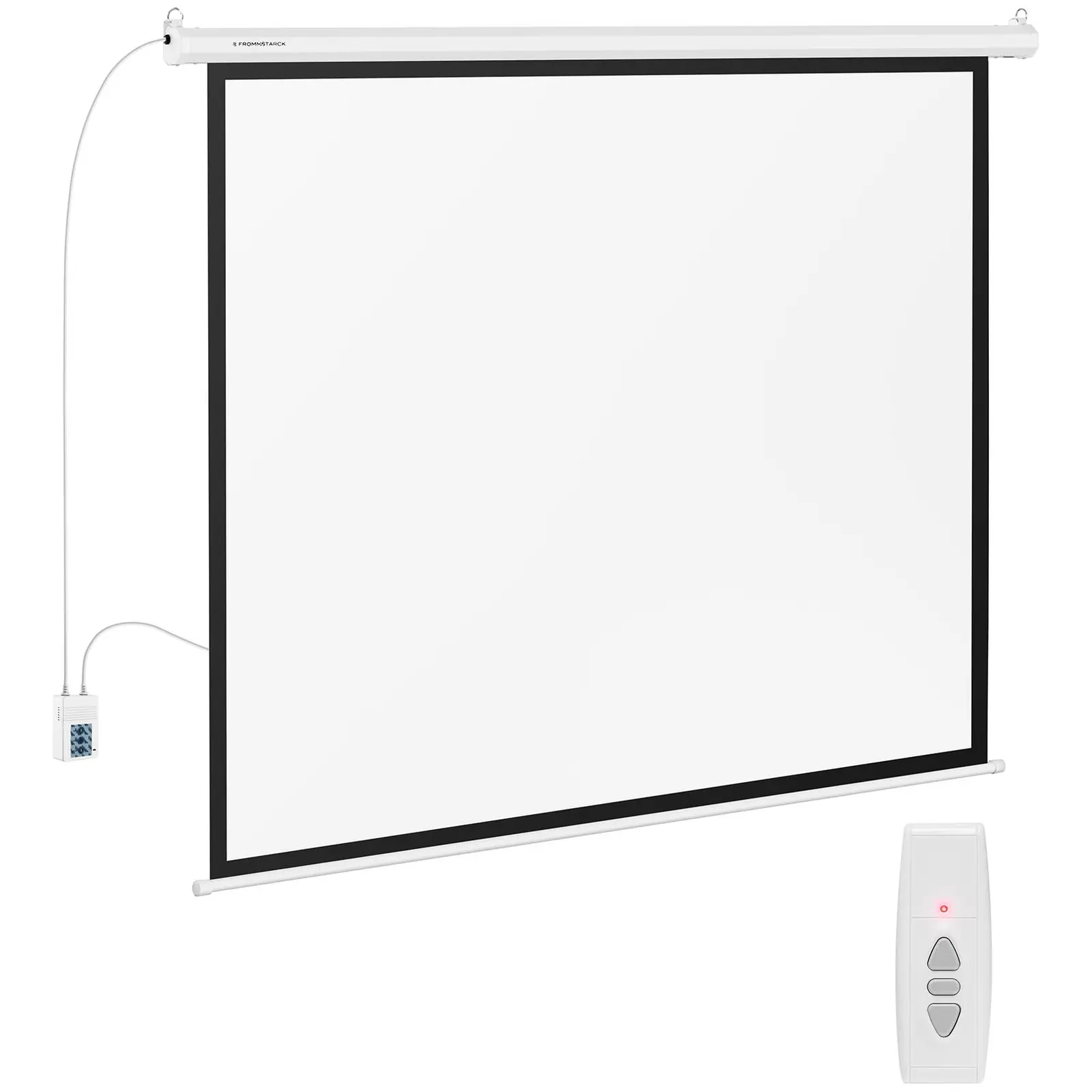 Kodikas elokuvateatteri olohuoneessasi, tärkeä tapaaminen konferenssisalissa tai yliopiston luentosalissa: Fromm & Starckin, valkokankaiden asiantuntijoiden STAR_RS84E43_01 -valkokangas tarjoaa täydellisen esityspinnan jokaiselle projektorille, jossa on näyttö edessä. Mitoiltaan 177 x 134 cm valkokangas, on vaikuttava 213 cm:n (84″) näyttökoollaan ja se loihtii todellisen leffafiiliksen kotiisi. Kankaan ympärillä oleva musta kehys saa aikaan 170 x 128 cm:n kuvapinnan 4:3-kuvasuhteella. Mustan kehyksen avulla voidaan parantaa kontrastia huomattavasti ja siten myös visuaalista lopputulosta. Koska takaosa on täysin musta, valkokangas ei heijasta valoa takaisin. Siksi voit asentaa valkokankaan tarvittaessa vaikka ikkunaan. Valkokangas liikkuu hiljaa alaspäin sähköisesti yhdellä kaukosäätimen painalluksella ja kehrää kätevästi takaisin valkoiseen koteloon tarvittaessa. Käytön jälkeen voit asettaa kaukosäätimen käytännölliseen seinätelineeseen niin, että se on aina käsien ulottuvilla. Tietysti voit säätää valkokangasta myös intuitiivisen ohjauspaneelin kautta. 3-kerroksisessa kankaassa, joka on valmistettu 0,4 mm ohuesta PVC: stä, on etuna muihin materiaaleihin nähden se, että se on heti avatessa tasainen ilman rumia taitoksia. Heijastusteholtaan 1,1 -Gain-arvo varmistaa alhaisen valonheijastuksen, joka mahdollistaa laajan katselukulman. Tämä tarkoittaa, että korkealaatuisia videoformaatteja, kuten Full HD, Ultra HD, 4K ja 8K voidaan myös näyttää valkokankaalla ilman laadun heikkenemistä, mikä tekee elokuvakokemuksestasi erityisen nautinnollisen.