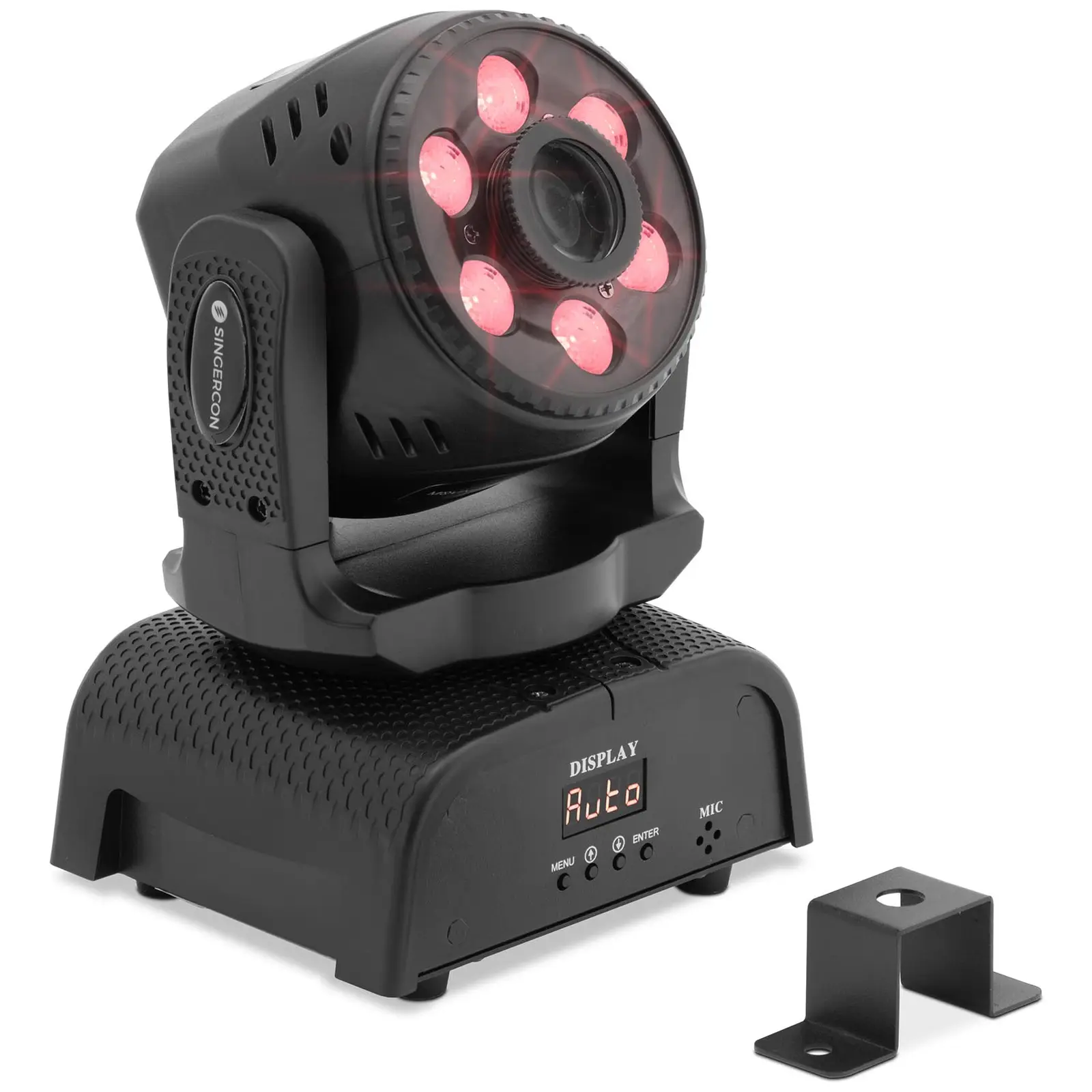 Mitä olisikaan disko, konserttilava tai yökerho ilman vaikuttavaa valoshowta? Singerconin LED Moving Head loihtii jokaiseen tapahtumaan sopivan tunnelman ja upottaa paikan värikkääseen mereen lähes rajattomalla värivalikoimalla. Valkoisella 35 W:n vahvalla LEDillä ja kuudella värillisellä 4 W:n LEDillä voit luoda erilaisia väriefektejä, jotka kietoavat juhlatilan tai tanssilattian upeaan valoon: joskus häikäiseviä, joskus mystisiä. Erikoislinssien ansiosta ympyrään asetetut LEDit loistavat erityisen kirkkaasti ja niitä voidaan himmentää 0 – 100 prosenttia. Voit valita neljästä eri vaihtoehdosta lavavalojen ohjaamiseen: automaattisesti, musiikin ohjauksella, master-slave tai DMX. Voit kuitenkin hallita eniten digitaalista DMX 512 -ohjausprotokollaa, jossa on jopa 13/18 kanavaa. Ja jotta lavavalaistus ei kuumene liikaa edes kuumina disko-iltoina ja pitkillä tanssimaratoneilla, valossa on tehokas jäähdytys. Kestävästä muovista (ABS) valmistetulla kotelolla varustettu diskovalo tarjoaa erityisen pitkän käyttöiän. Nämä takaavat myös LEDin käyttöajan 50 000 – 100 000 h. Samalla suojausluokka IP20 varmistaa juhlavalaistuksen sujuvan ja häiriöttömän toiminnan.