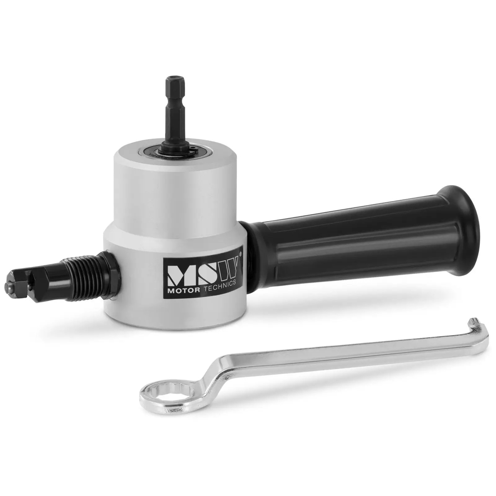 2in1: Käytä kaksoisterää poranteränä leikatessasi muovista ja ruostumattomasta teräksestä valmistettuja levyjä tai peltejä. Peltileikkurilla leikkaat kuparista, alumiinista, teräksestä ja ruostumattomasta teräksestä valmistetut levyt sekä puuta – tasaisilla, suorilla leikkuureunoilla. Monipuolinen terä sähkötyökaluille leikkaa materiaalit kaikkiin haluttuihin muotoihin. Helppo ja nopea – työstä jopa 2 mm paksuisia levyjä nakertajan kaksoisterällä. Leikkuuterä leikkaa niin tasaista kuin myös aaltolevyä sekä putkea. Kiinnitystanko tekee kaksoisterästä sopivan lähes kaikkiin kaupallisesti saatavilla oleviin porakoneisiin. Oletko oikea- vai vasenkätinen? Säädä kahvaa sen mukaan ja hyödynnä molempia leikkuupäitä.