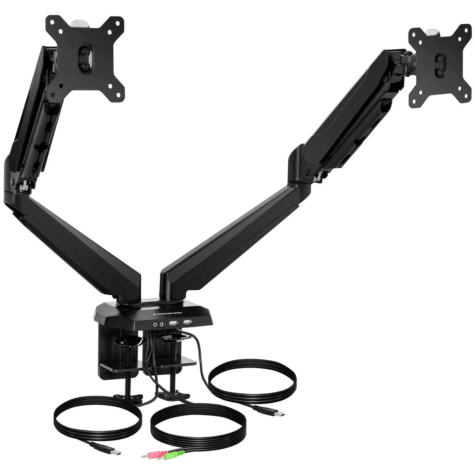 Joustava kahden näytön näyttövarsi luo tilaa työpöydälle ja se on myös täysin mukautettavissa yksilöllisiin työhaasteisiin. Näyttöjä voidaan kääntää ja kallistaa portaattomasti helpon pöytään asentamisen jälkeen. Lisäksi telineen varsia voi kääntää. Päivitä toimistokalusteesi ja työskentele tulevaisuudessa ergonomisesti Fromm & Starck-sarjan näyttövarsien avulla! Universaalia monitorivartta voidaan käyttää kaikissa vakiomalleissa, joiden näytön läpimitta on 15 ”- 27”. Painevaletusta alumiinista valmistettu vakaa ja kestävä rakenne sallii 8 kg:n maksimikuormituksen. Näyttö asetetaan varteen asennuslevyn avulla, jossa olevat rei´ät ovat 75 x 75 mm:n tai 100 x 100 mm:n etäisyydessä toisistaan (VESA-standardi). Tämän näyttövarren lyömätön etu on kuitenkin sen ihanteelliset asetusmahdollisuudet ja niiden mukanaan tuoma toimistolaitteiden joustavuus: liikkuvaa näyttövartta voidaan sujuvasti kallistaa -90 ° – 84 °, kiertää 360 ° ja kääntää 180 ° kaasujousella sen portaattoman säätömahdollisuuden ansiosta. Etäisyyttä monitoriin sekä katselukulmaa voidaan helposti muuttaa ja mukauttaa kulloisinkiin tarpeisiin. Silmät, kaula ja selkä pääsevät helpommalla ja tietokoneella työskenteleminen on miellyttävämpää ja terveellisempää. Myös työtulosten esittäminen tai niistä keskusteleminen muiden työntekijöiden kanssa on helppoa, vakuuttavaa ja ammattimaista näyttövarren avulla. Lisäksi kohokohtana voidaan mainita integroidut USB- ja kuulokeliitännät, jotka estävät kaapeleita sotkeutumasta toisiinsa.